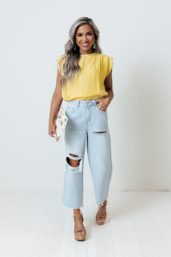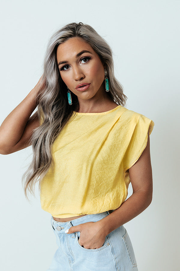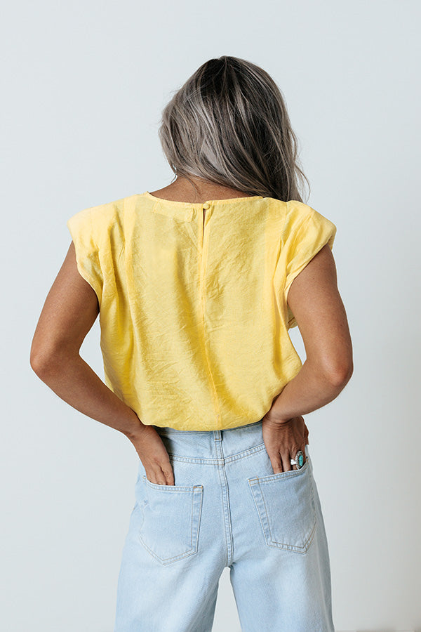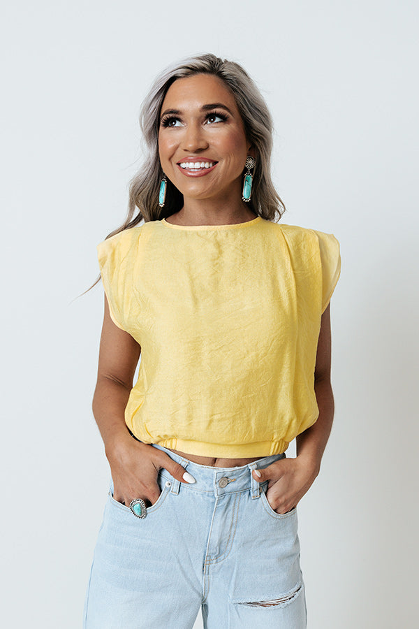 Your wardrobe is sure to look well curated when you add this bright yellow top! It features lightweight and smooth flowy material, a rounded neckline, cap sleeves, a keyhole accented upper back with a button closure, and a relaxed but flattering silhouette that ends in a straight hemline!