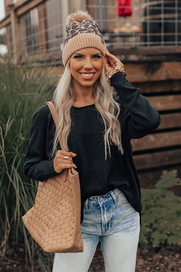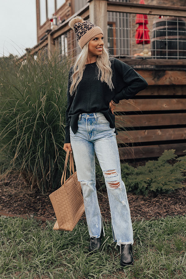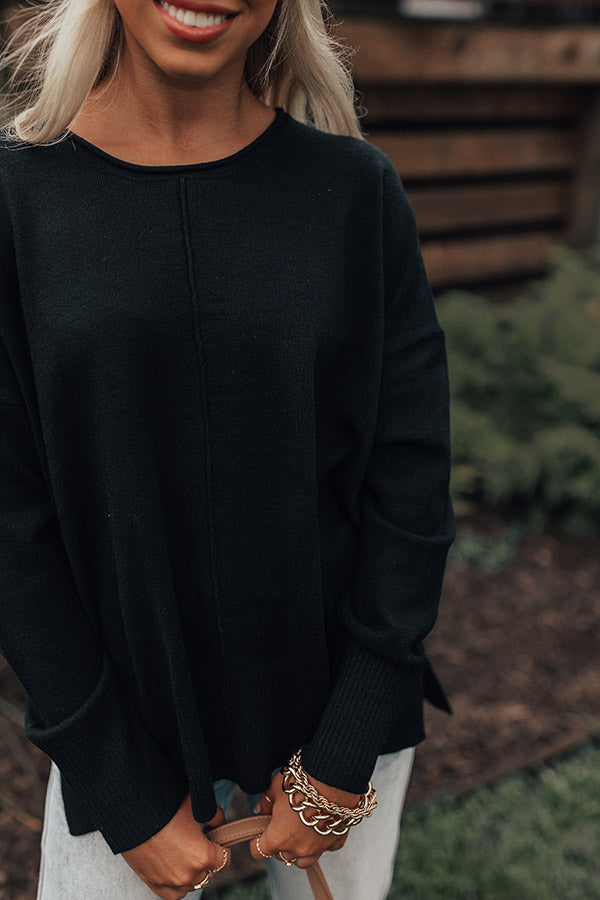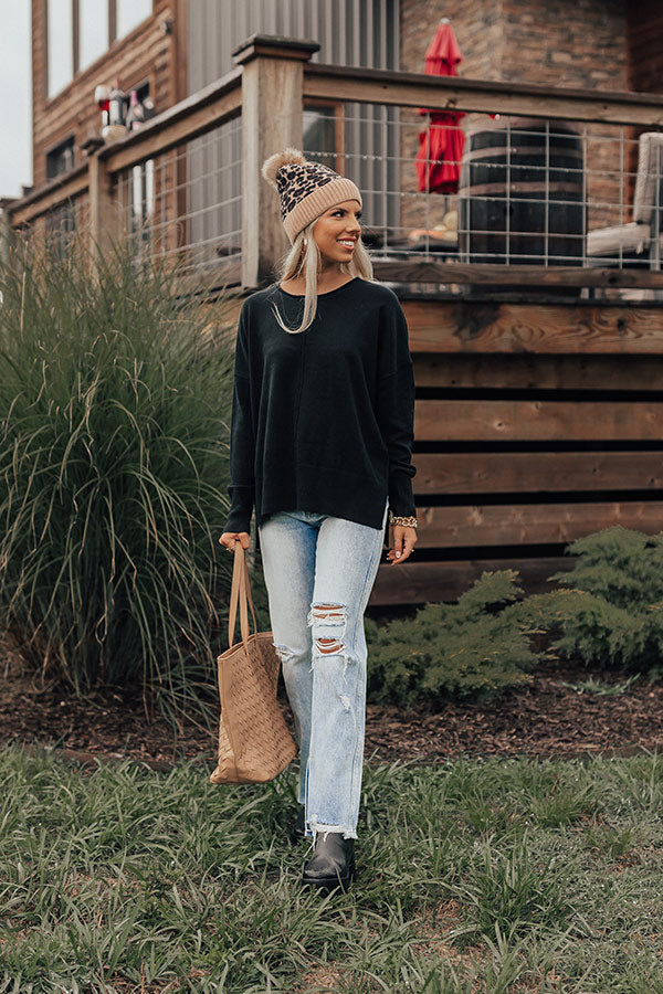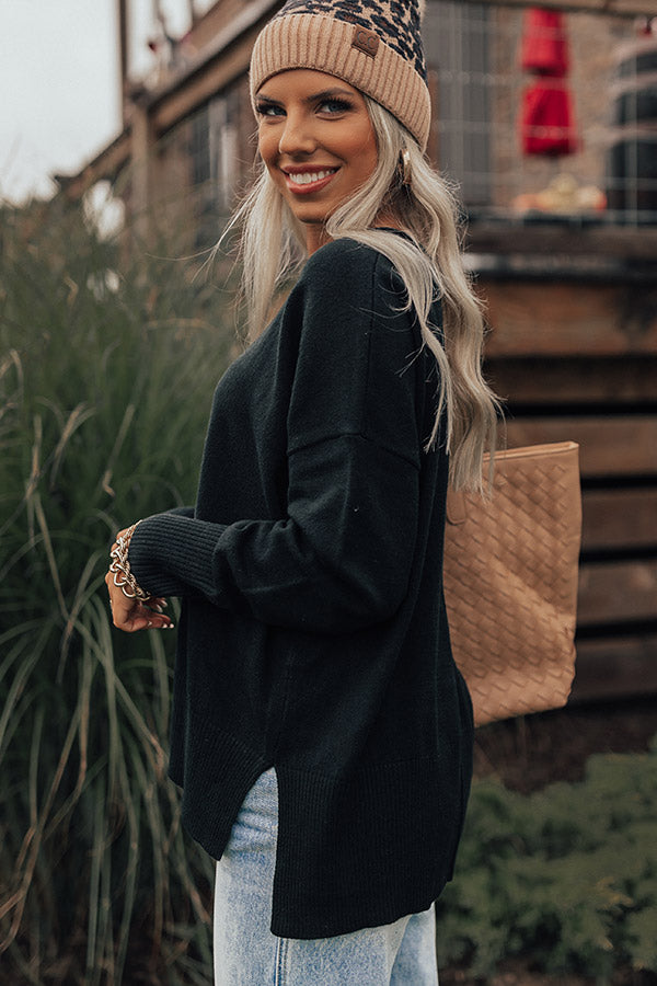 The perfect fall piece to wear solo or layer with, our versatile black 'West Virginia Smiles Sweater' features lightweight knit material, a rounded neckline, long sleeves, and a relaxed silhouette that ends in a straight hemline!