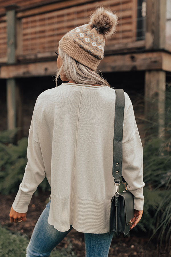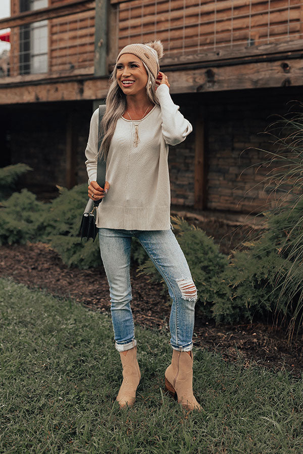 The perfect fall piece to wear solo or layer with, our versatile cream colored 'West Virginia Smiles Sweater' features lightweight knit material, a rounded neckline, long sleeves, and a relaxed silhouette that ends in a straight hemline!