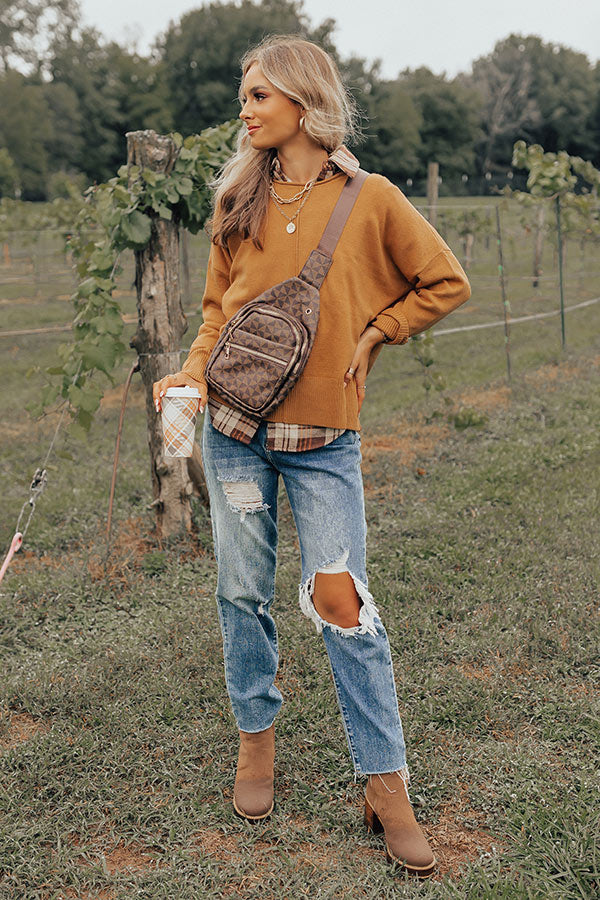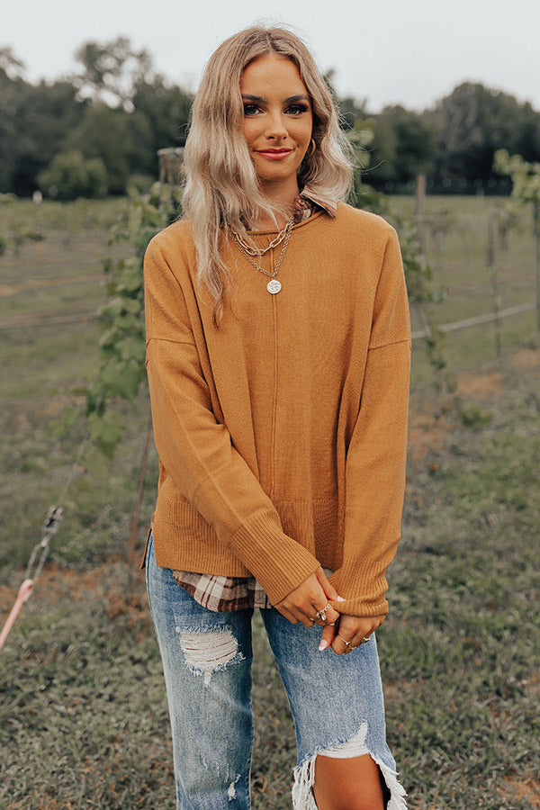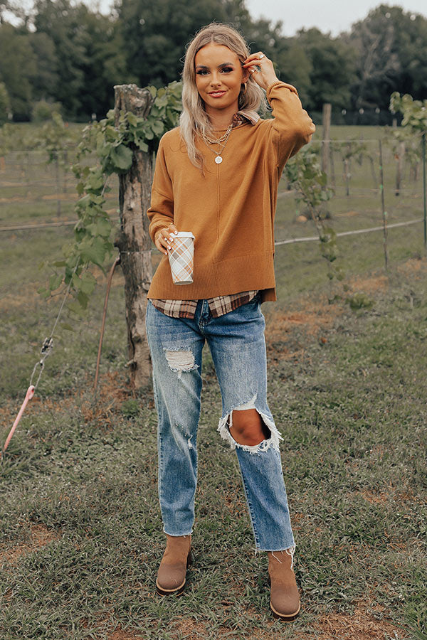 The perfect fall piece to wear solo or layer with, our versatile light camel colored 'West Virginia Smiles Sweater' features lightweight knit material, a rounded neckline, long sleeves, and a relaxed silhouette that ends in a straight hemline!