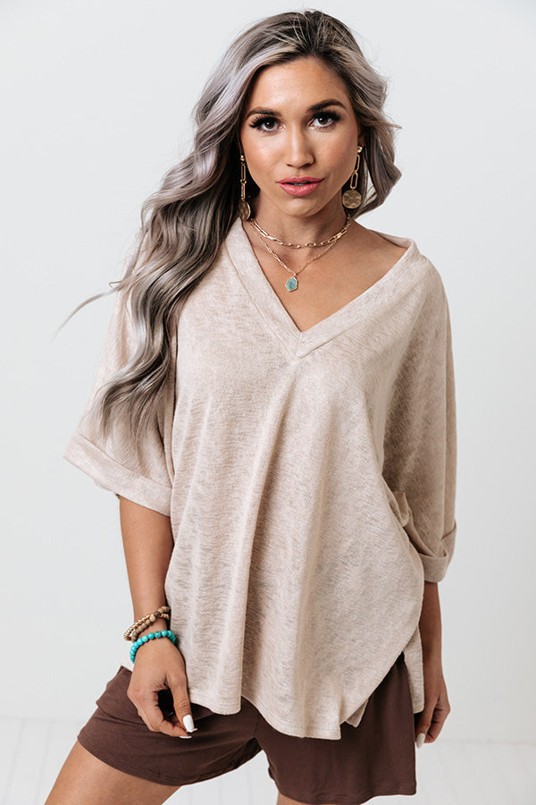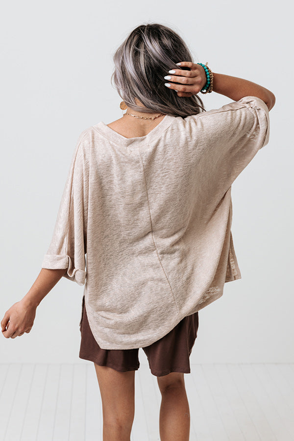 Keep it casual in our simple birch colored 'Westward Welcome Shift Tee' featuring soft lightweight and flowy material, a v-cut neckline, loose half sleeves, and a slouched silhouette that ends in a straight hemline with accent side slits! Measurements