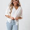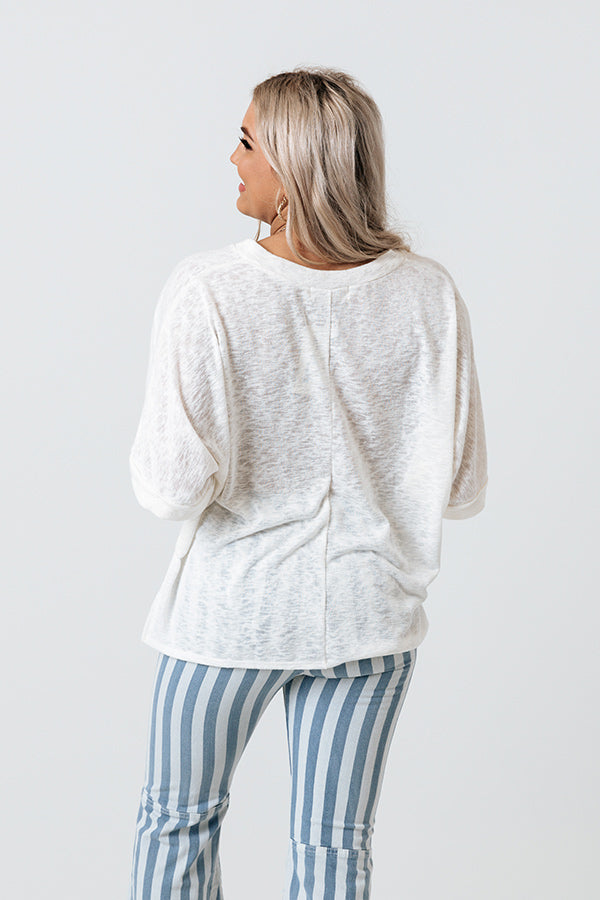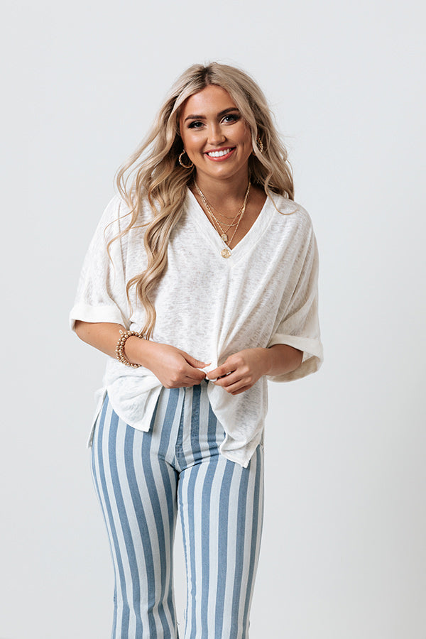 Keep it casual in our simple white 'Westward Welcome Shift Tee' featuring soft lightweight and flowy material, a v-cut neckline, loose half sleeves, and a slouched silhouette that ends in a straight hemline with accent side slits! Measurements