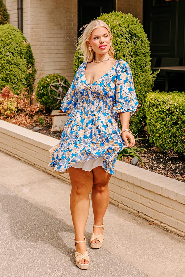 Whispering Muse Floral Mini Dress In Ocean Blue Curves