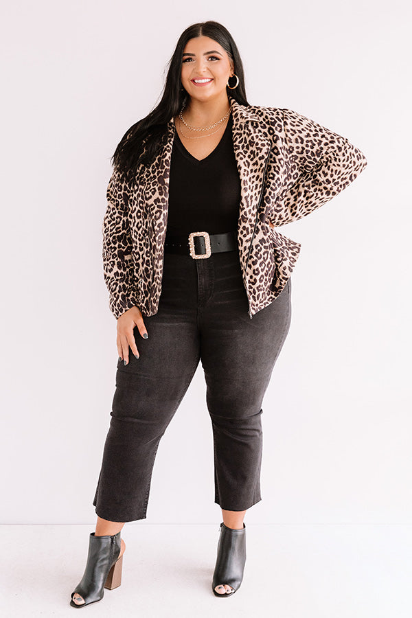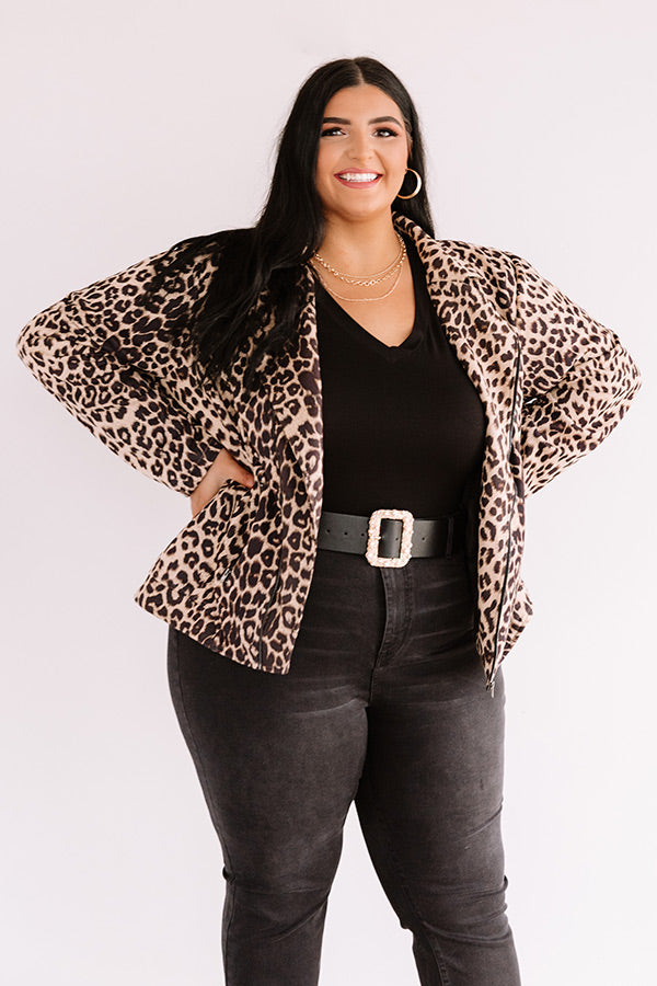 Plus Size - Boost your own confidence with this stunning iced latte colored "Whistler Weekend" jacket featuring lightweight material patterned with a bold black leopard print, long loose sleeves, accent side pockets, a collared neckline, and a figure flattering zip up silhouette that falls into a straight hemline! All you have to do is style it over a basic tank or bodysuit with your fave distressed denim or trousers and add some simple heels and accessories for the ultimate girl boss look! Measurements