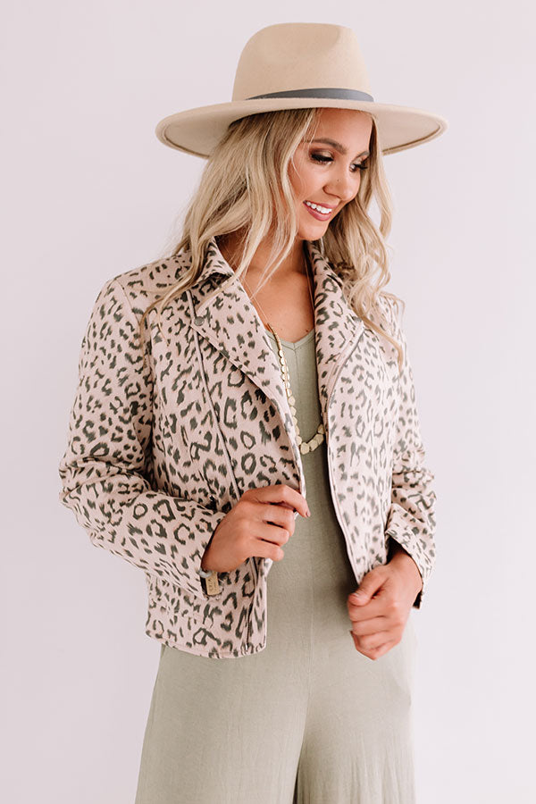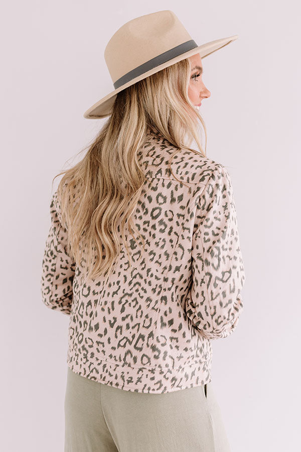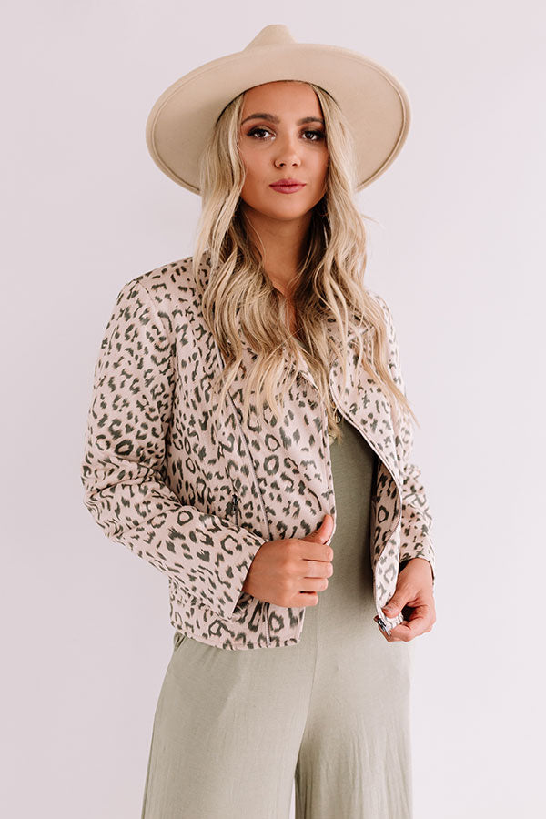 Boost your own confidence with this stunning rose quartz colored "Whistler Weekend" jacket featuring lightweight material patterned with a bold black leopard print, long loose sleeves, accent side pockets, a collared neckline, and a figure flattering zip up silhouette that falls into a straight hemline! All you have to do is style it over a basic tank or bodysuit with your fave distressed denim or trousers and add some simple heels and accessories for the ultimate girl boss look!