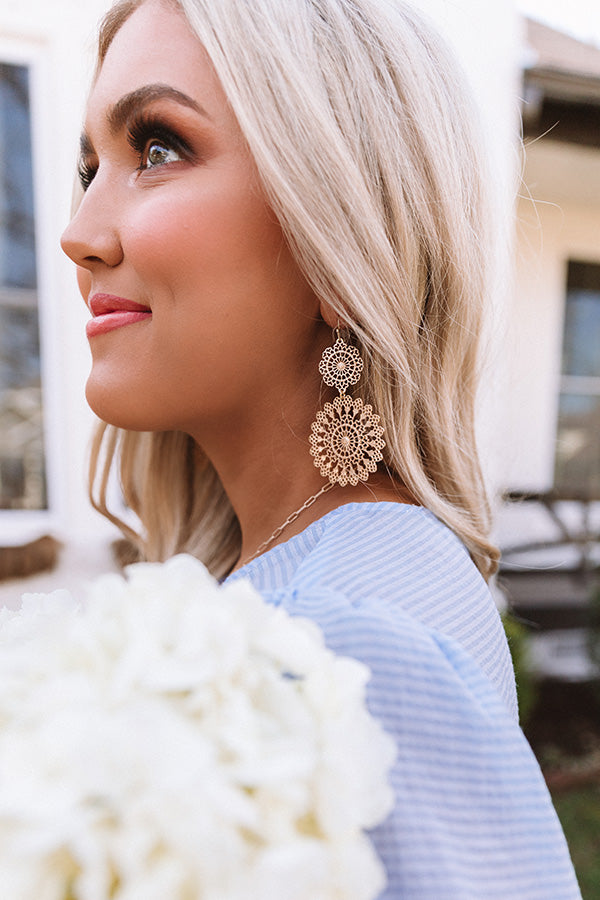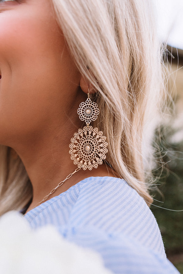 You are sure to look fabulous when you accessorize with these gorgeous statement earrings featuring gold dangling cutout flowers!