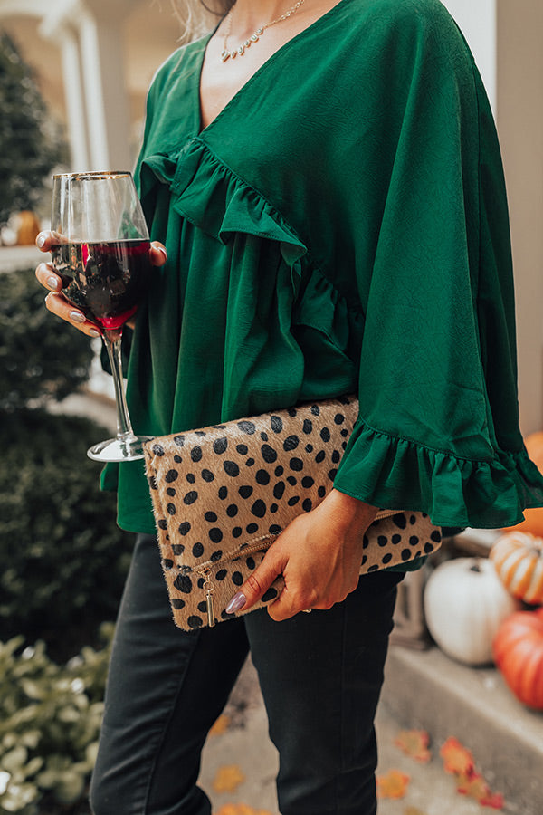 We have no doubt you will fall wildly in love with this adorale clutch featuring a faux hide material patterned with a black cheetah print, a flap closure with a snap button, a gold chain link shoulder strap, and a spacious interior with a zip closure!