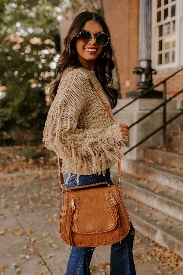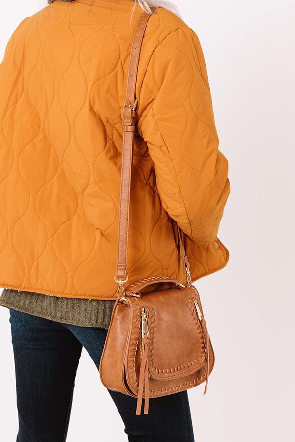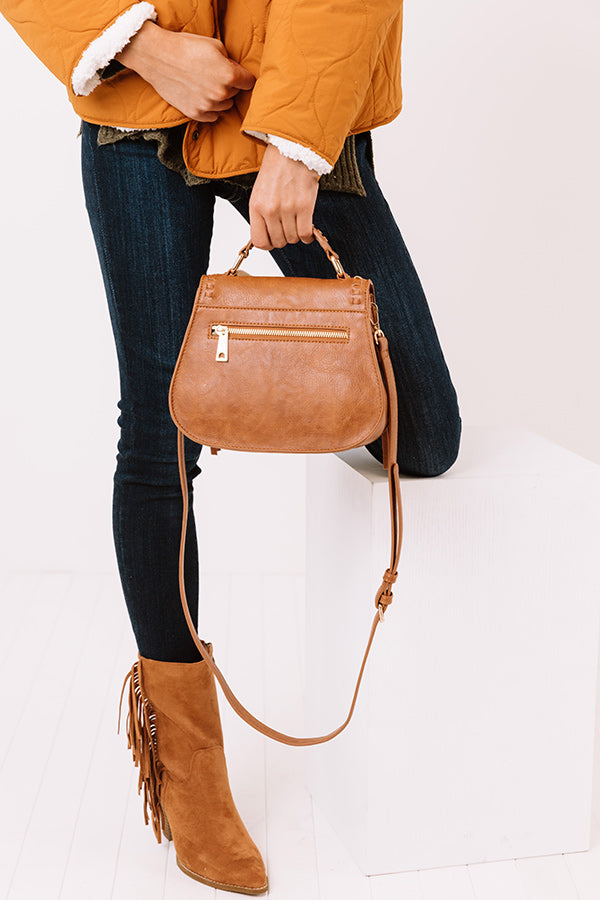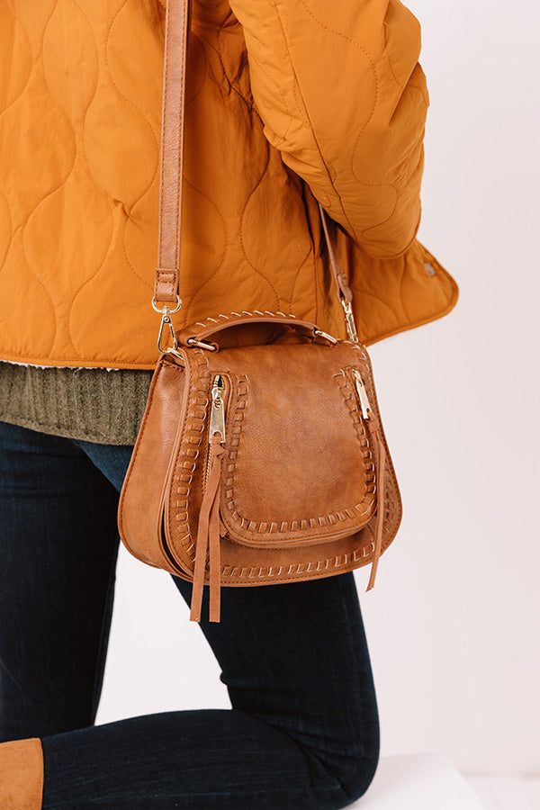 Tote around town in style by accessorizing with our gorgeous cinnamon colored 'Windy City Mini Crossbody' featuring sleek lightweight faux leather material, a wide 1-inch adjustable shoulder strap, a single short tote handle, an outside back zip pocket, oversized stitch detailing, and a spacious rounded pouch with a flap snap closure and additional inside pockets!