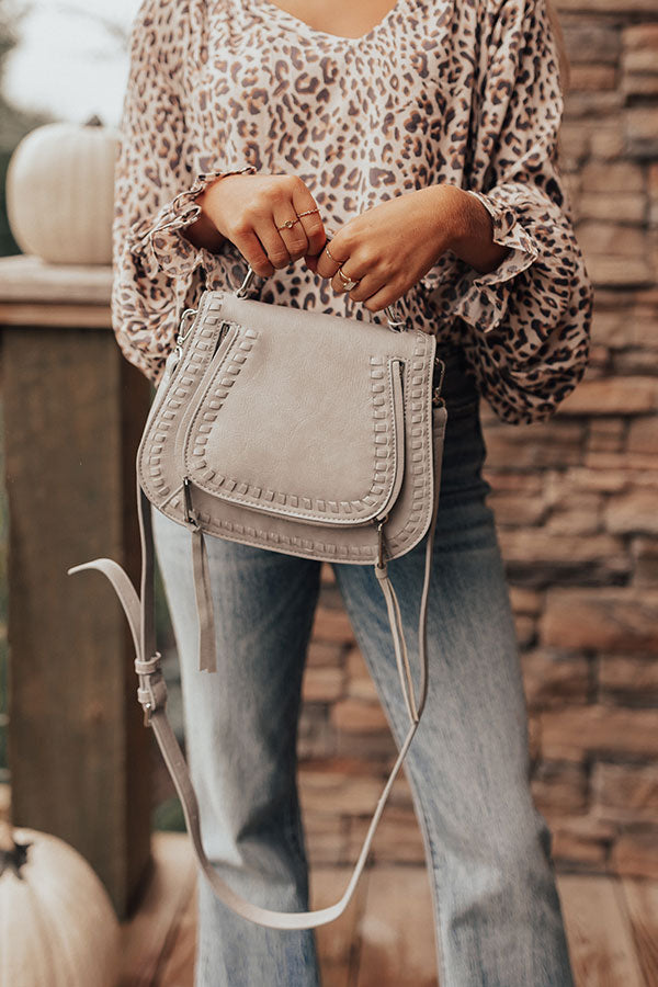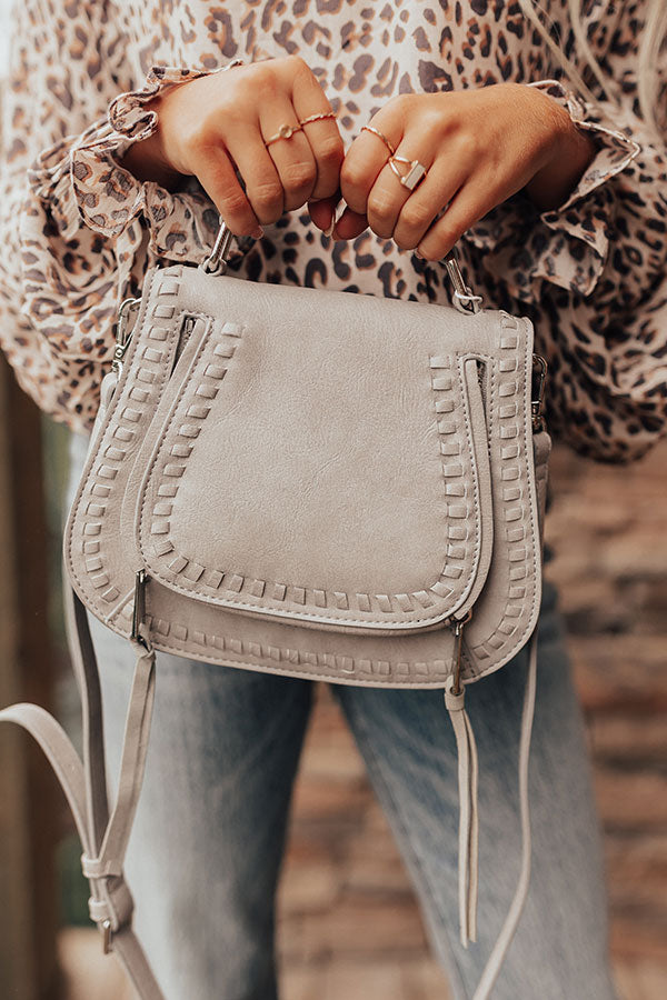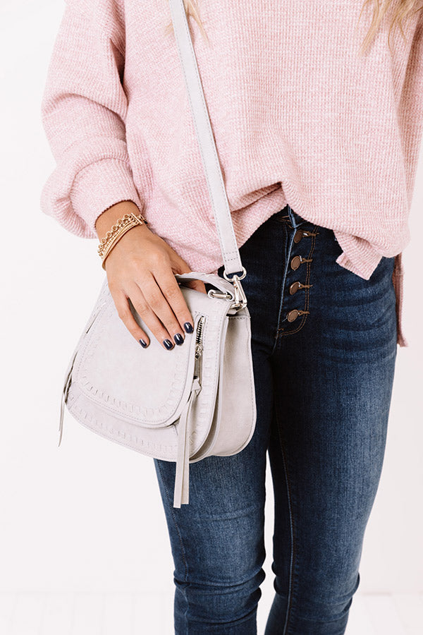 Tote around town in style by accessorizing with our gorgeous light grey 'Windy City Mini Crossbody' featuring sleek lightweight faux leather material, a wide 1-inch adjustable shoulder strap, a single short tote handle, an outside back zip pocket, oversized stitch detailing, and a spacious rounded pouch with a flap snap closure and additional inside pockets!