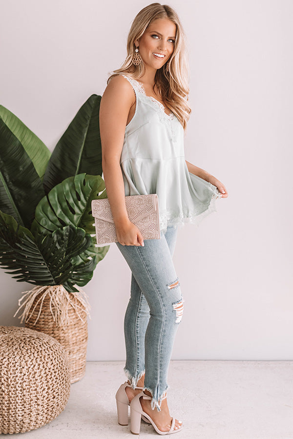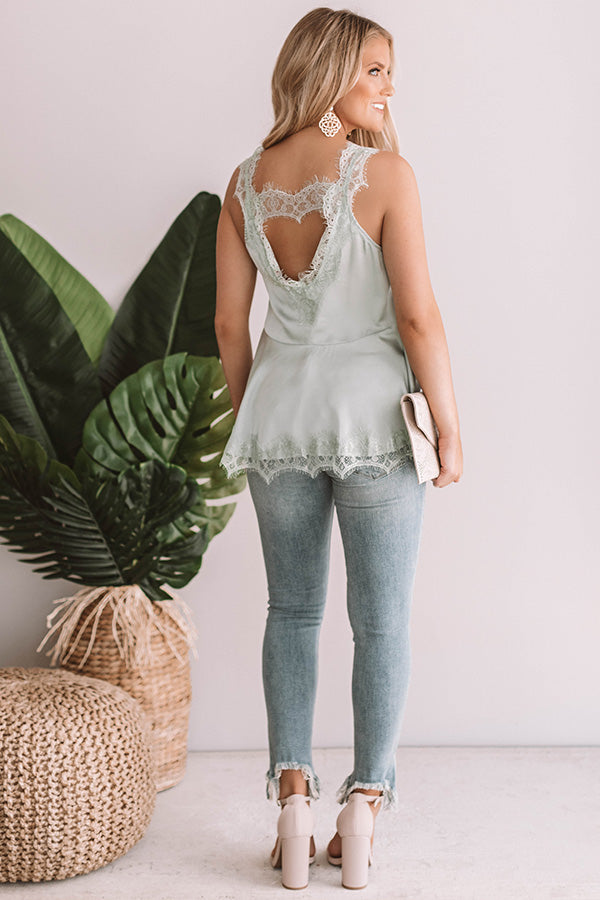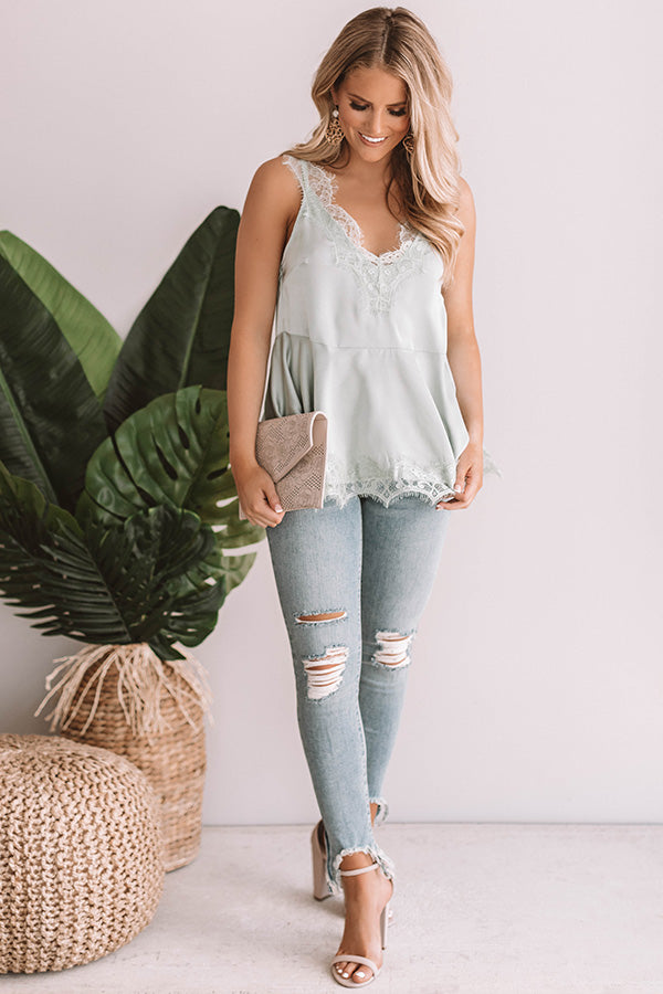 Chic satin fabric, with lace trim sleeves, neckline, back detail, and hem add some spice to this relaxed fit cami tank! Featuring a slight peplum hem to top things off, this tank is perfectly polished! Pairs well under anything and effortlessly cute on it's own!
