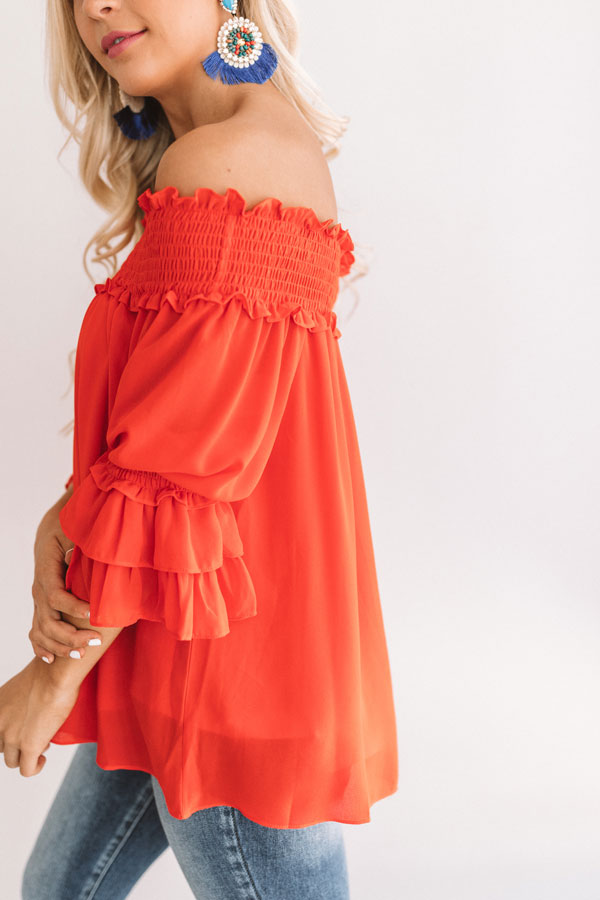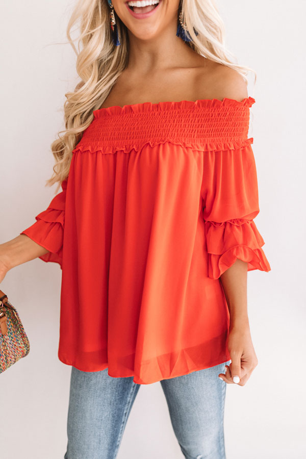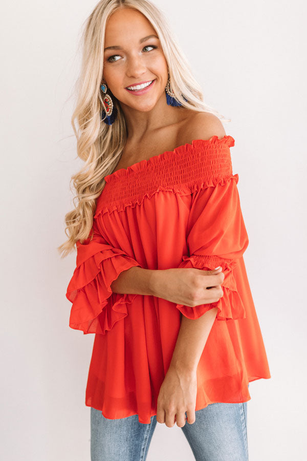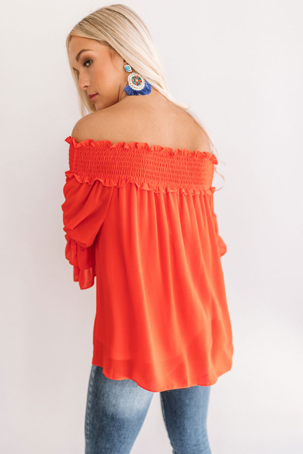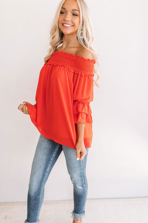 Wine And Sunshine Off Shoulder Top In Scarlet