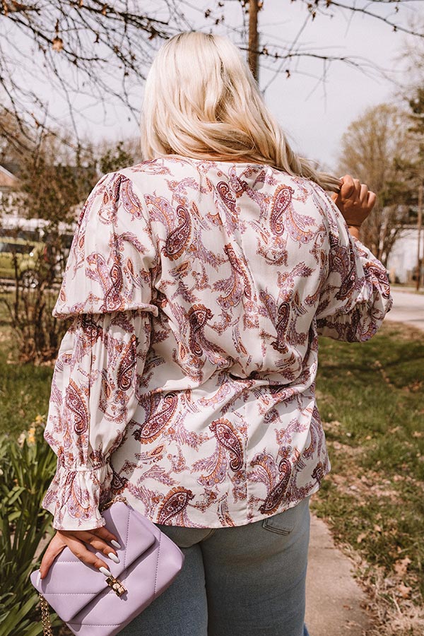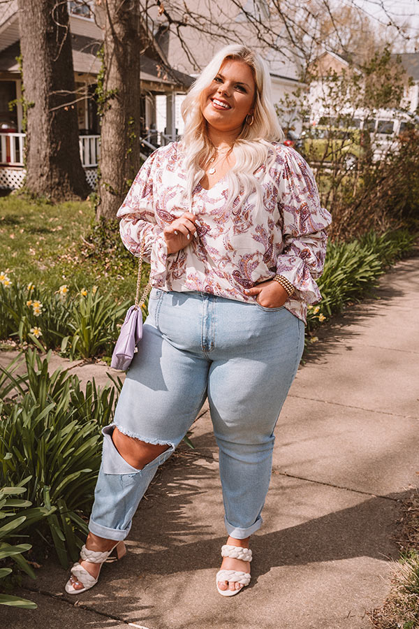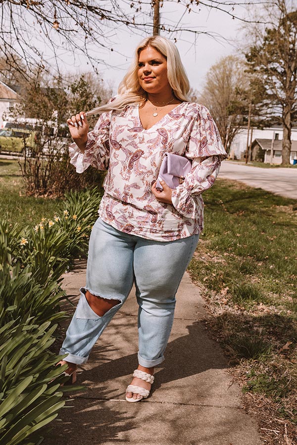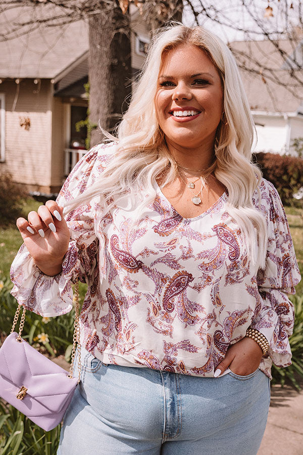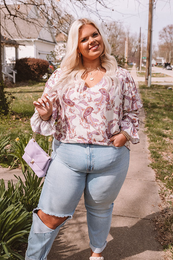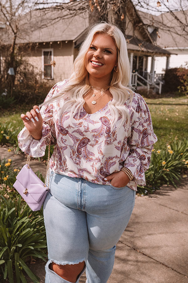 Plus Size - You are guaranteed to turn heads when you complete your look with our cute 'Wine Grove' shift top featuring lightweight flowy material patterned with a blush and purple hued paisley print, a scooped neckline, long loose sleeves with flared cuffs, and a relaxed silhouette that falls into a straight hemline! Measurements