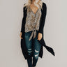 Measurements - S variant has a Bust of 38", a Hip of 34", a Length of 45", a Sleeve Length of 27.5", a Waist of 30".