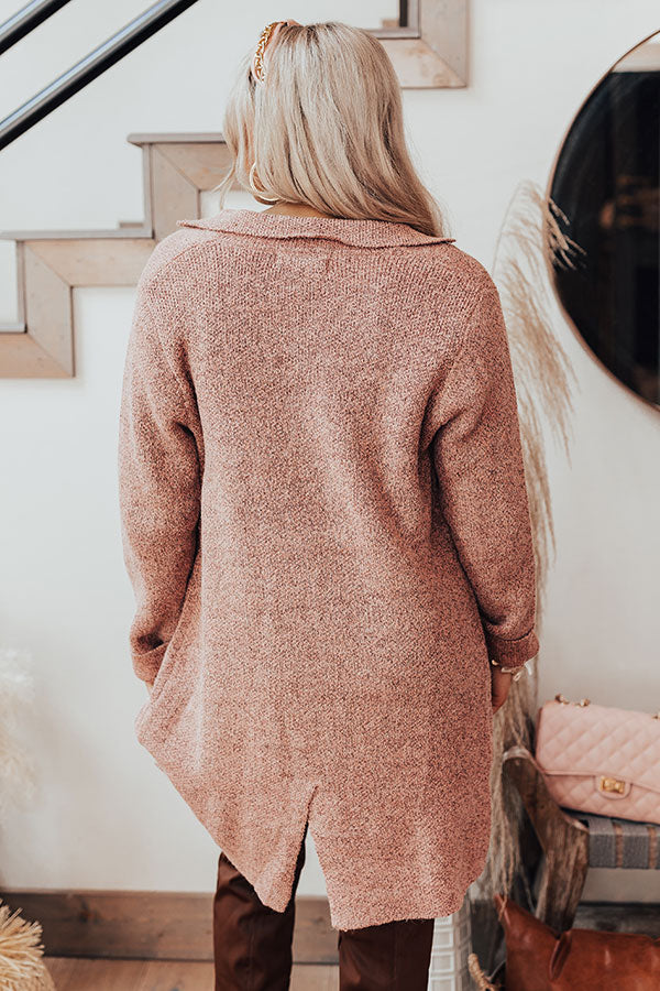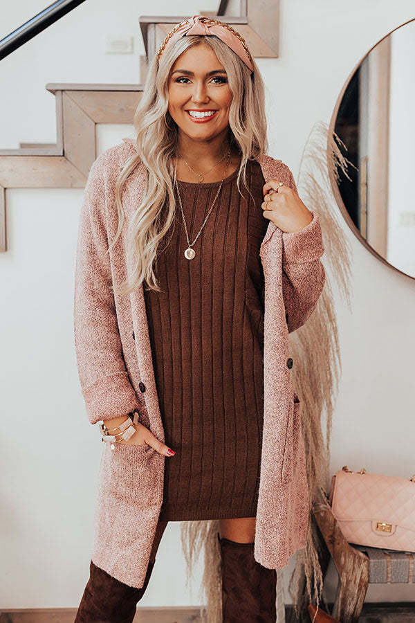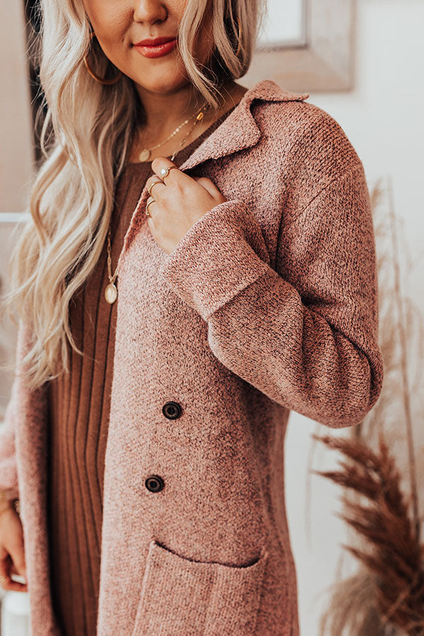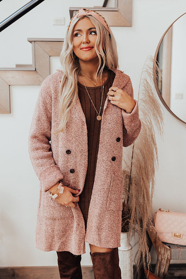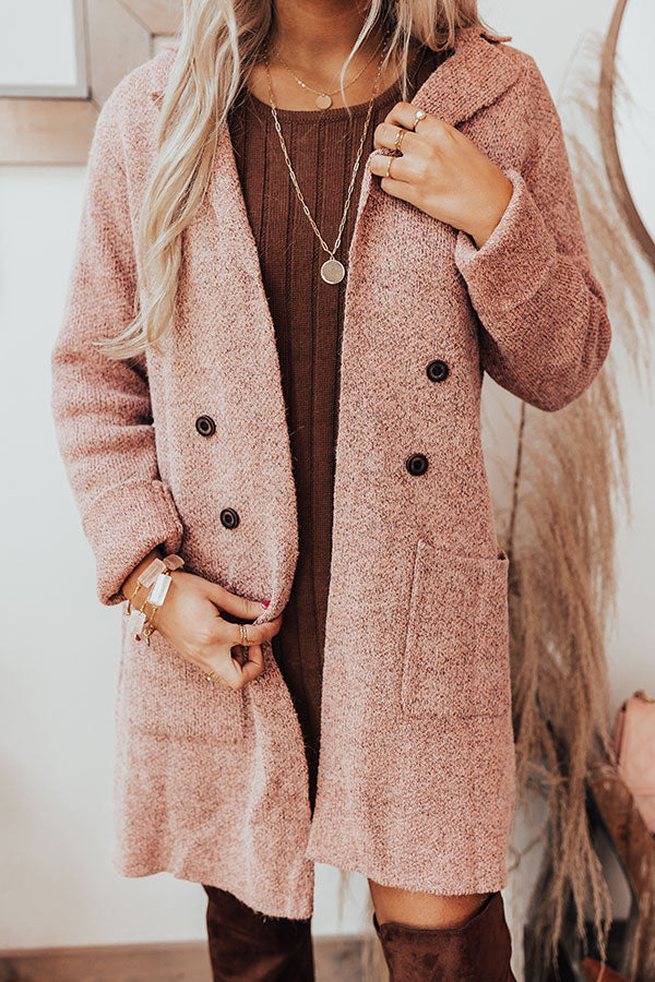 Stay warm in style with our adorable blush colored 'Wine In Winter Park' coat featuring soft lightweight material, long loose sleeves, a collared neckline with v-notch detailing, low accent side pockets, a button down front, and a slouched silhouette that falls into a straight mid-thigh length hemline! Measurements