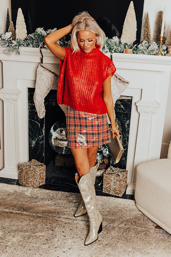 Wine Tasting Metallic Sweater Top in Red