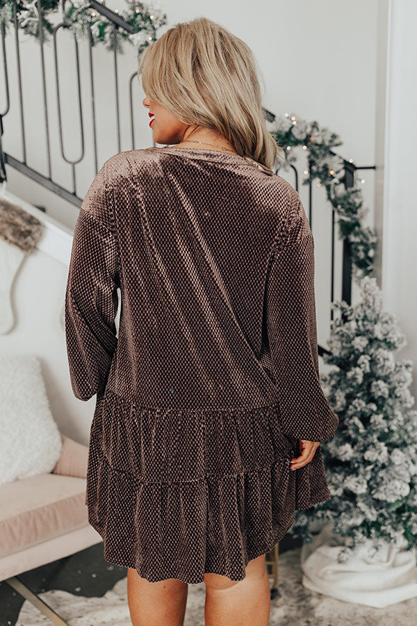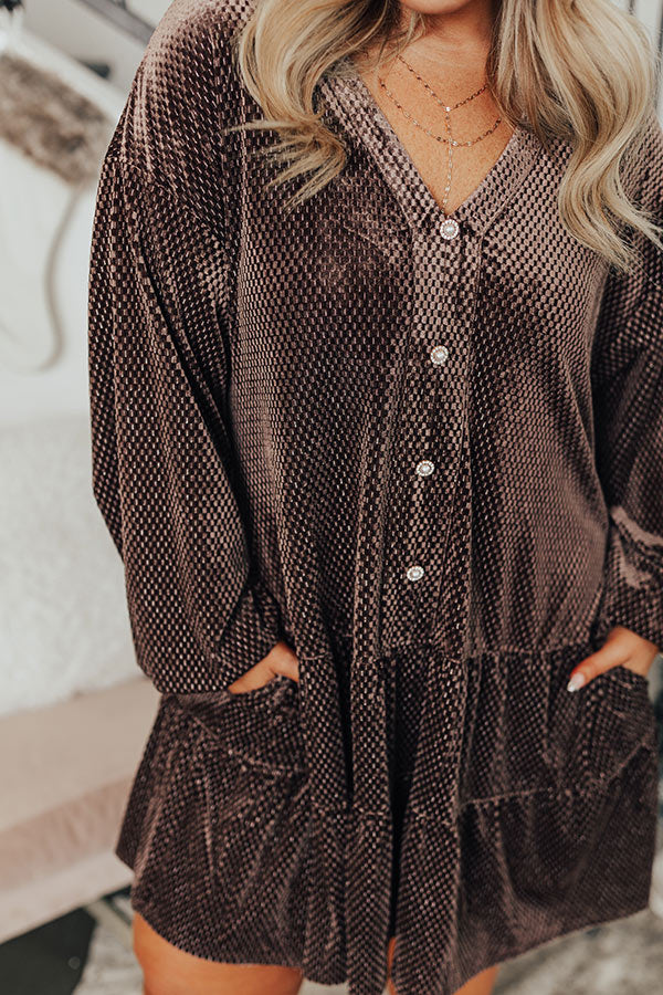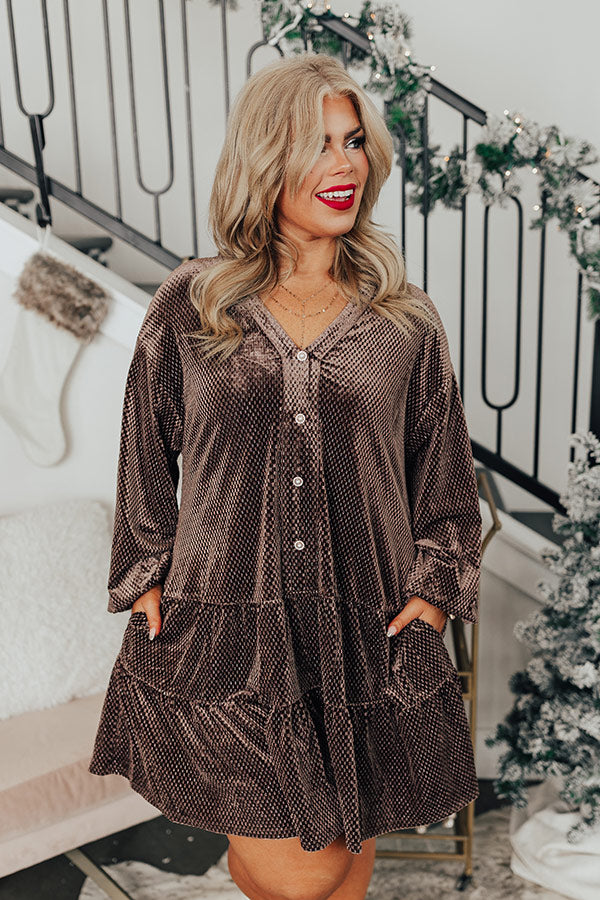 Wine Tasting Velvet Shift Dress In Brown Curves