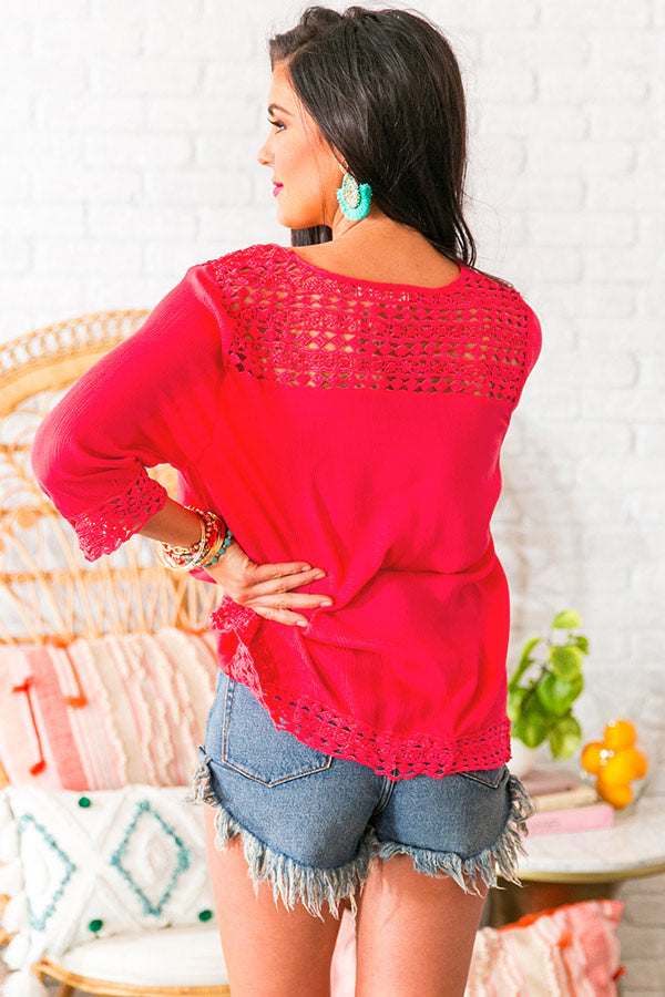 Wine Tour Crochet Shift Top in Raspberry