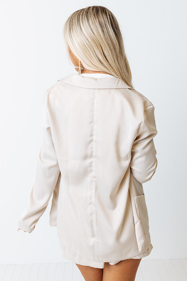 You will look like the ultimate girl boss in our chic beige colored 'Winning Awards Blazer' featuring sleek lightweight material, long loose sleeves, a collared neckline, and a flattering silhouette that ends in a straight hemline!