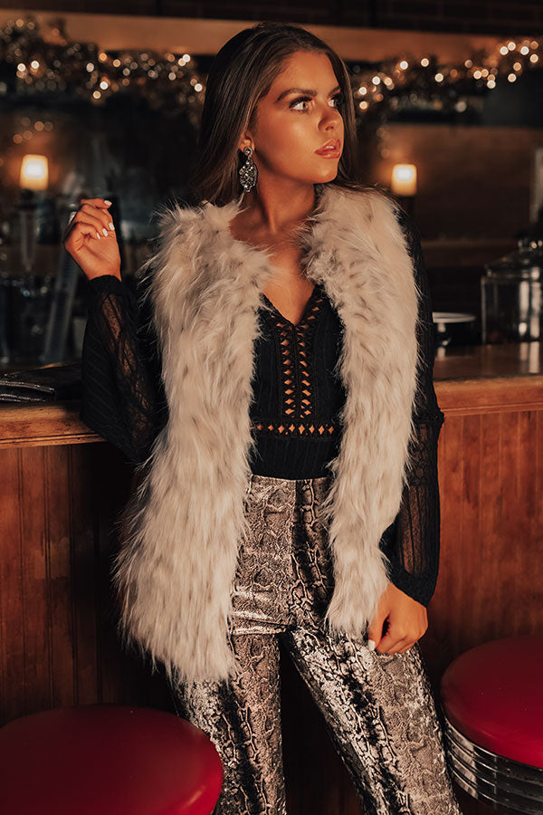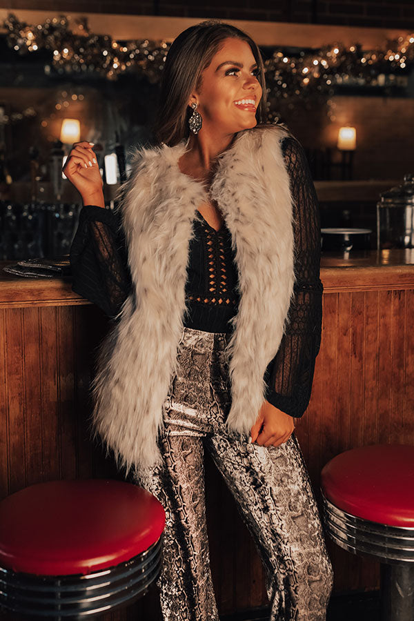 Add an extra layer of warmth to stay protected from the "winter chill" with this adorable vest featuring a soft and thick faux fur material, a silky lining, wide shoulder straps, and a relaxed open front silhouette that falls into a straight hemline! You can style this versatile piece with just about anything from a basic tank to a sweater, jeans to skirts or dresses, booties to wedges or sandals, clutches to totes, and hats to earrings! Measurements