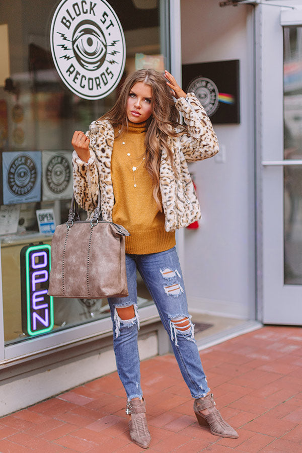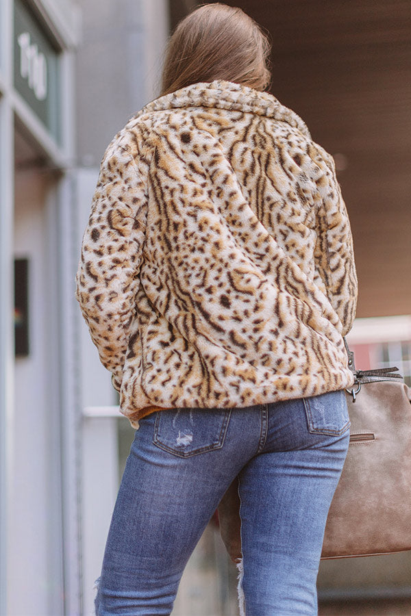 When packing for your "Winter Park getaway" don't forget to pack this luxurious plush coat featuring ultra soft leopard print material, long sleeves, a high collar, hidden side pockets, and a zip up front with a chic bodice that falls into a straight hemline! You can style this cold weather essential over a sweater with some distressed ankle skinnies, statement jewelry, and a neutral bootie and tote, or you can pair it with a basic tank tucked into our "Weekend In NYC Ribbed Velour Skirt in Black" and "The Diana Faux Suede Thigh High Boot in Camel!" Measurements