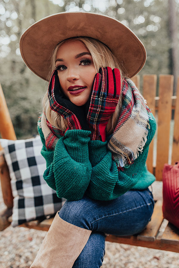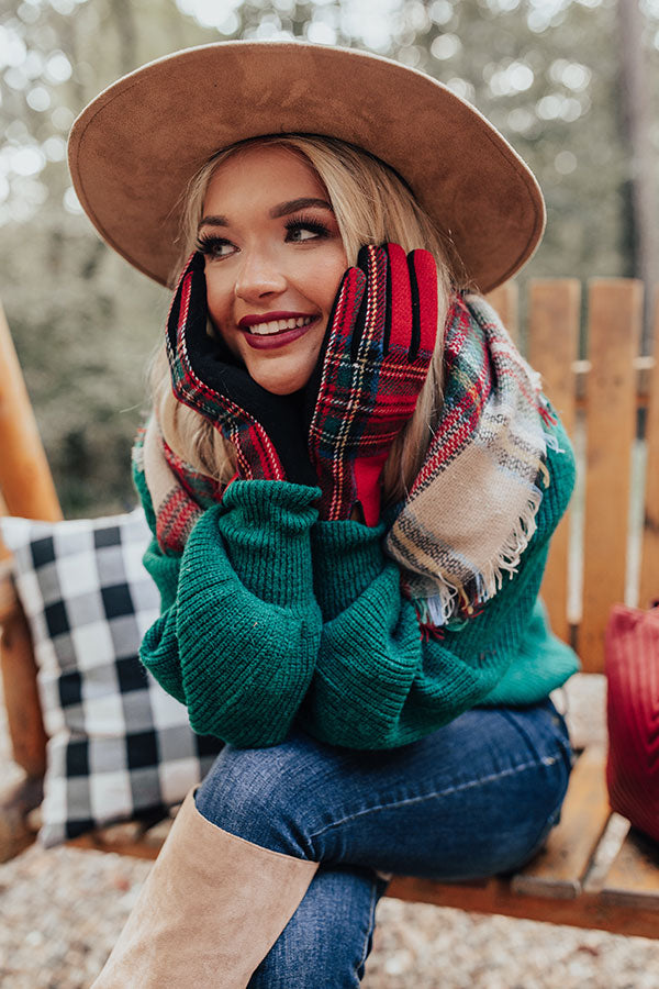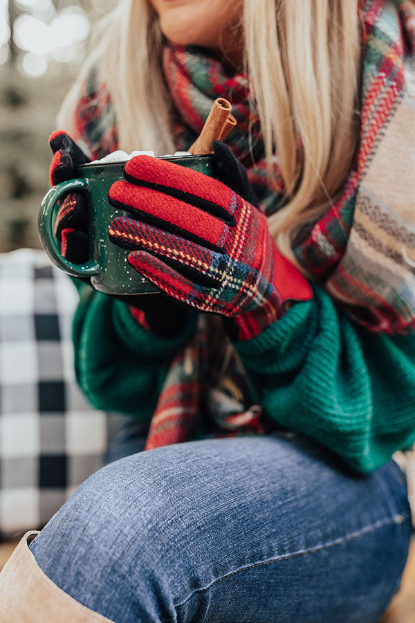 Winter Thrills Plaid Tech Gloves In Red