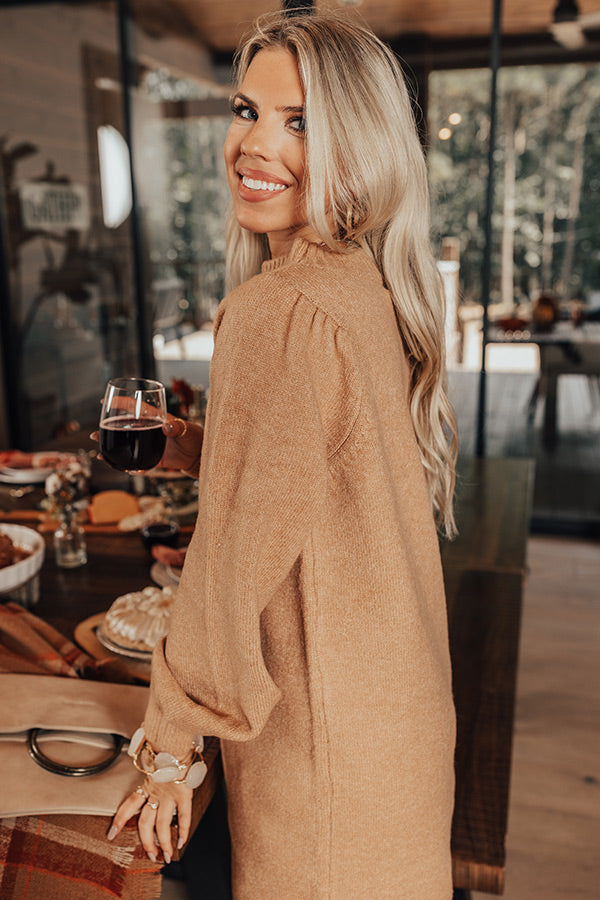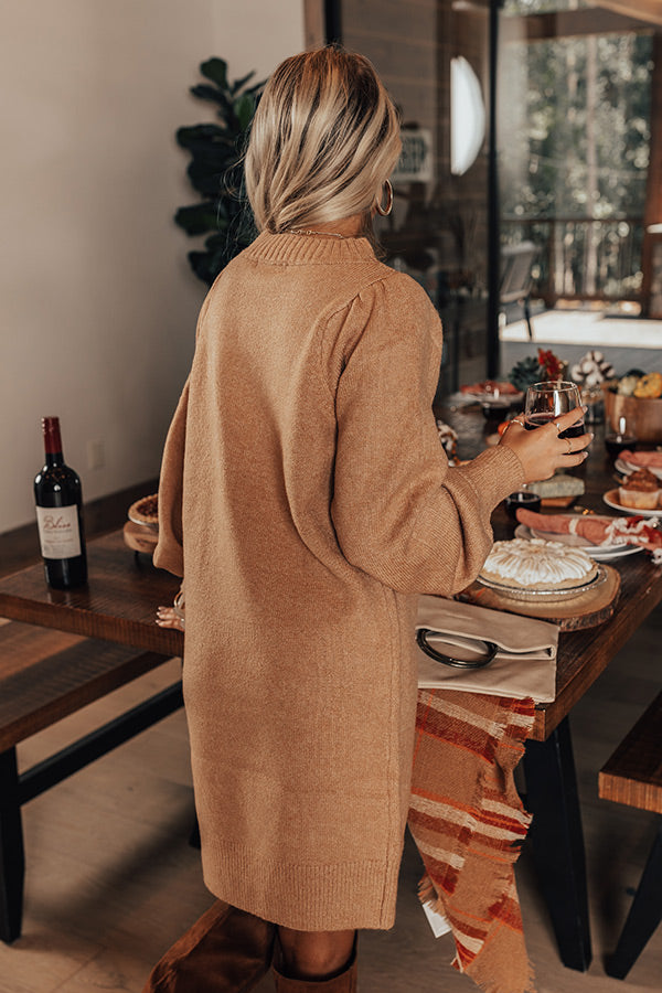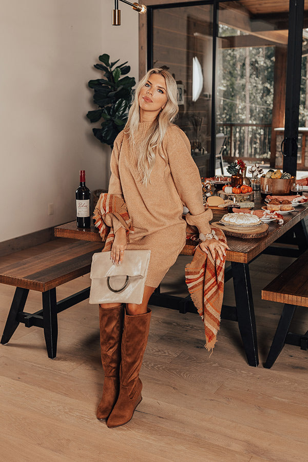 You won't find a more versatile fall piece than our basic iced latte 'Winter Views Sweater Dress' featuring soft knit material, long loose sleeves with fitted cuffs, a high neckline with ribbed texturing, and a flattering silhouette that falls into a straight mid-thigh length hemline! Measurements