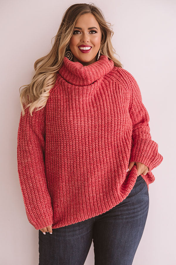 Plus Size - Nothing bring comfort to a gloomy winter day like a soft and cozy sweater like our red hued "Winter Village" one featuring soft lightweight tight knit material with ribbed texturing, an oversized bunched turtle neckline, long loose sleeves with fitted cuffs, and a relaxed silhouette that falls into a straight hemline! We have styled this cold weather cutie with some dark wash flares, neutral booties, and a leopard tote, but you can also wear it with some distressed light wash ankle skinnies, "The Seraphina Faux Leather Wedge in Grey," and our "All Caught Up Headband in Grey!" Measurements