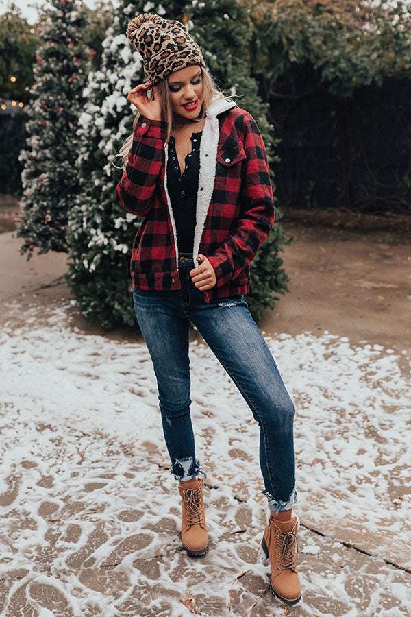 Winter Whisper Plaid Jacket In Red