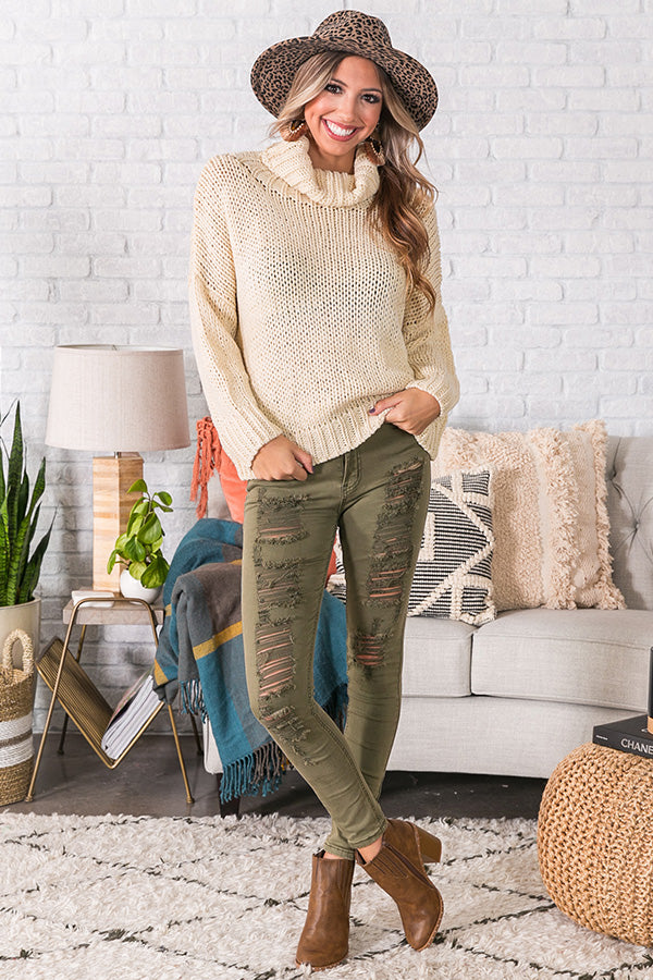 Walking in a winter wonderland has never been easier than in this chic turtleneck sweater! This cozy sweater has a chunky, ribbed turtle neckline, long sleeves & a relaxed knit bodice with a ribbed hem. Accessorize & add your favorite denim, for a timeless look that you will have on repeat season after season.