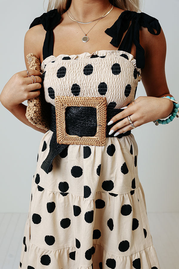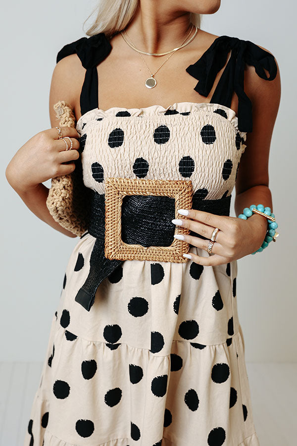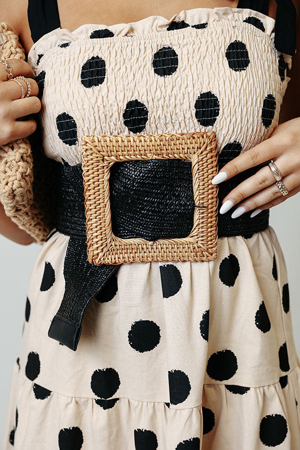 Make a statement with our chic 'Wishful Weekend' belt featuring a black lightweight woven strap and an oversized raffia square hoop buckle!