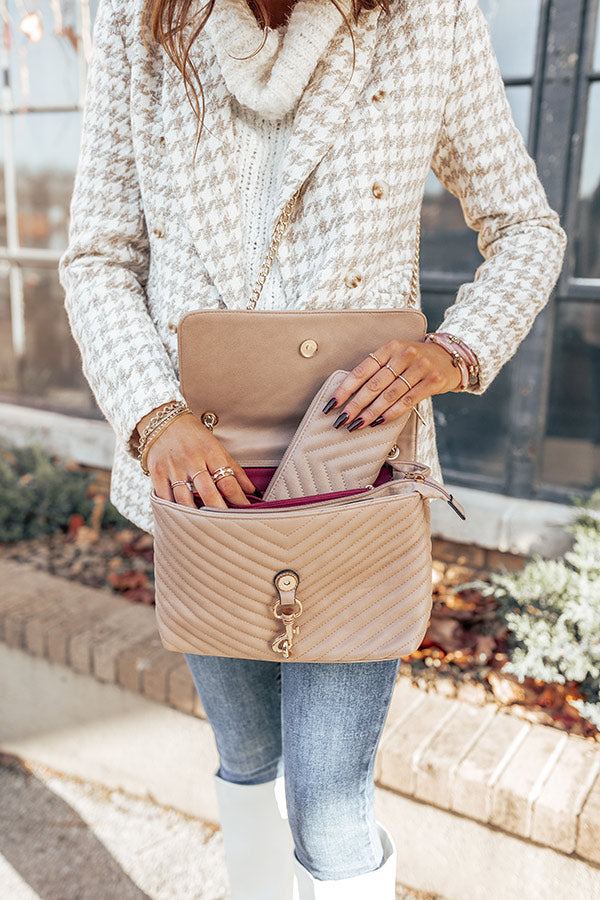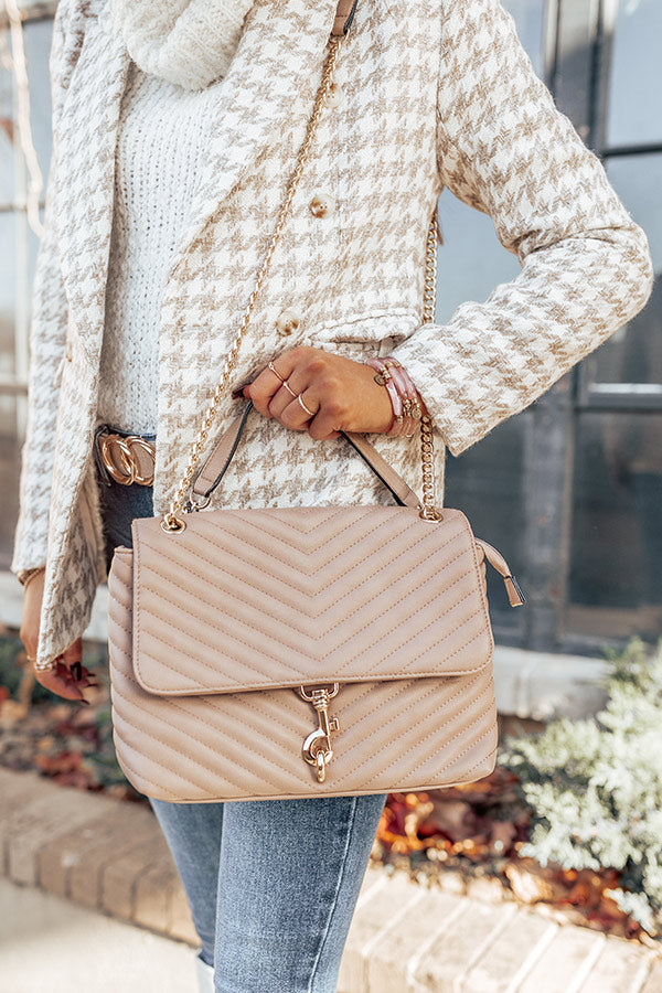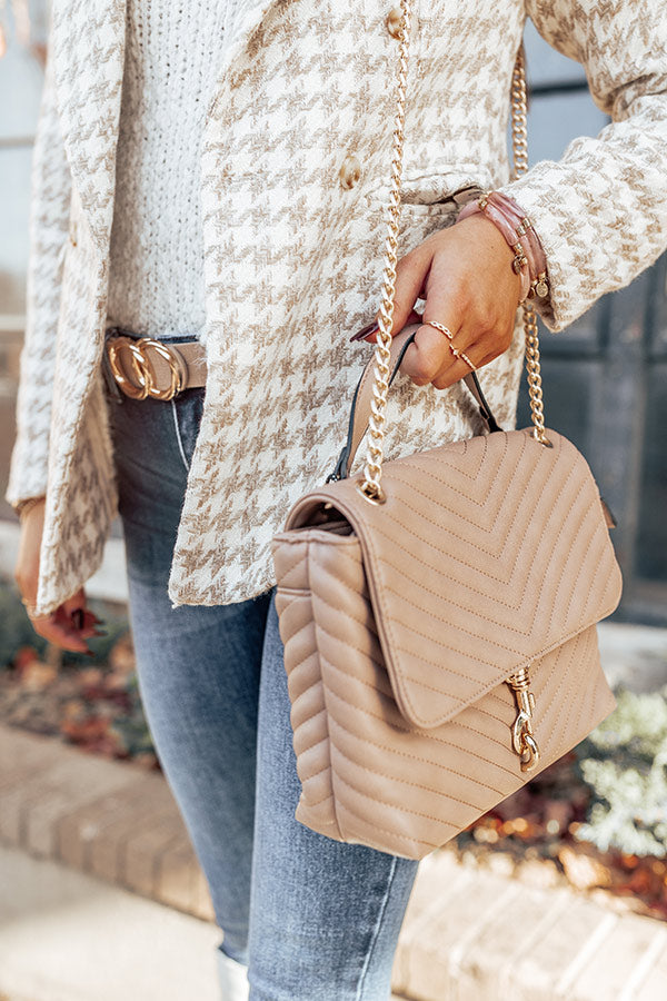There is no better bag to carry your everyday essentials in than our chic taupe colored 'Wishing For Love' crossbody featuring sleek faux leather material with diagonal quilted texturing, a flap closure with a clip hardware, an adjustable chain link shoulder strap, and a spacious fully lined interior with additional inside pockets!
