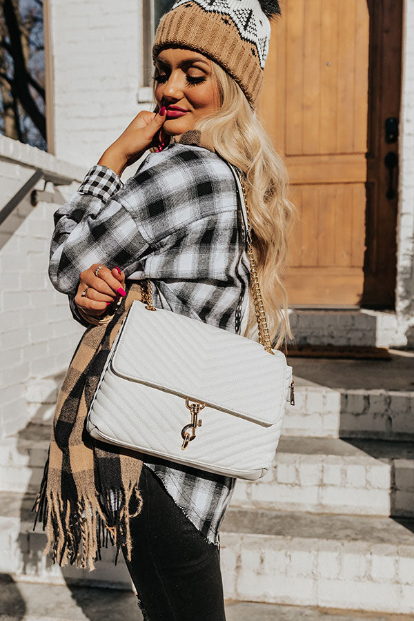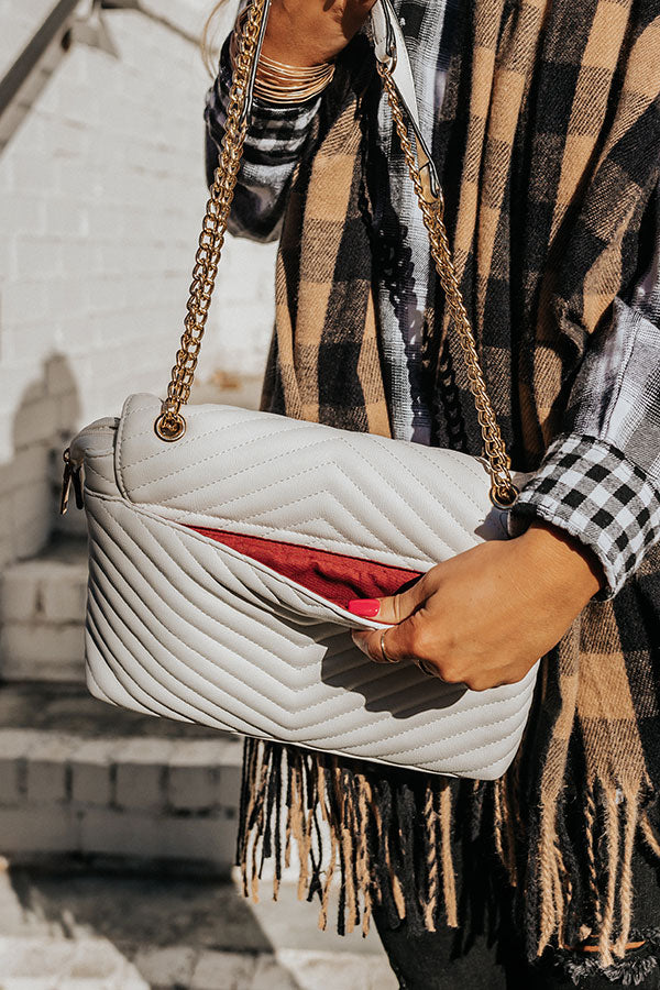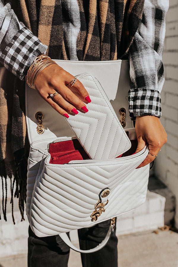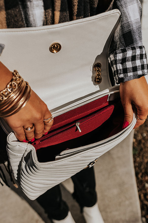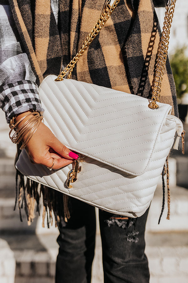 There is no better bag to carry your everyday essentials in than our chic white 'Wishing For Love' crossbody featuring sleek faux leather material with diagonal quilted texturing, a flap closure with a clip hardware, an adjustable chain link shoulder strap, and a spacious fully lined interior with additional inside pockets!