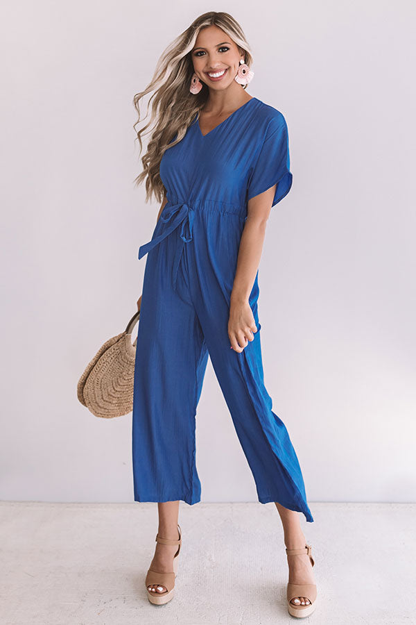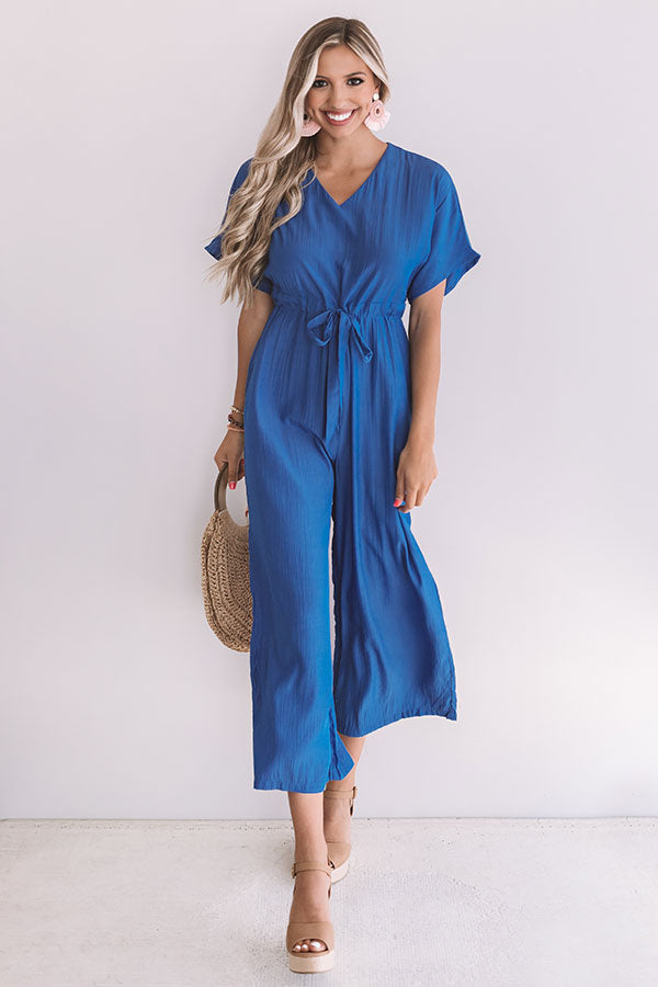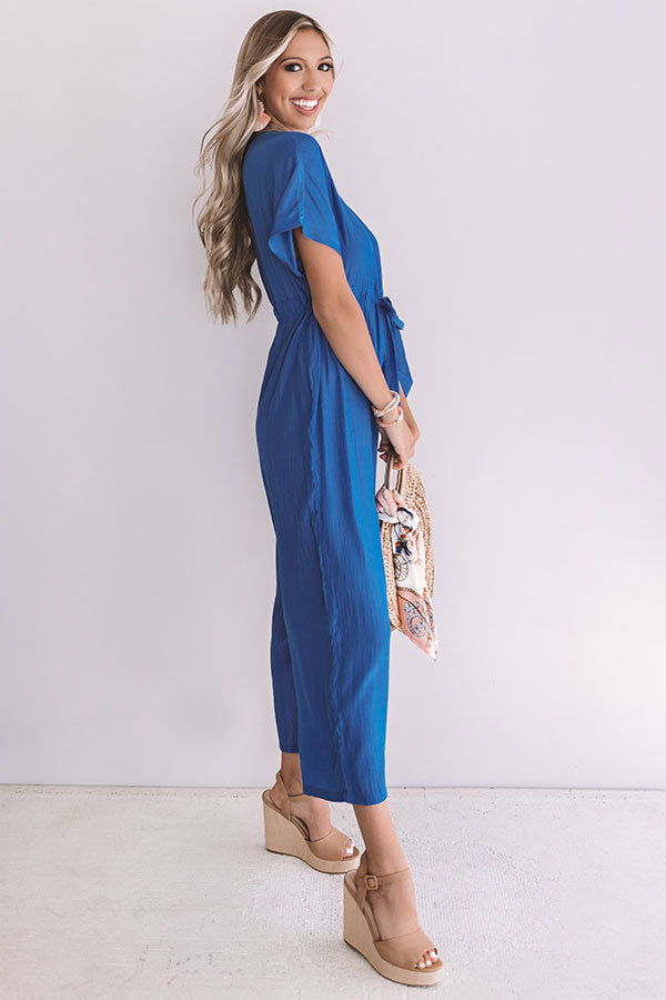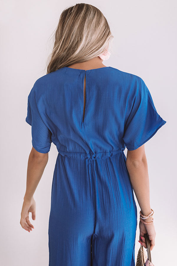 Wishing For Wine Satin Jumpsuit In Sapphire