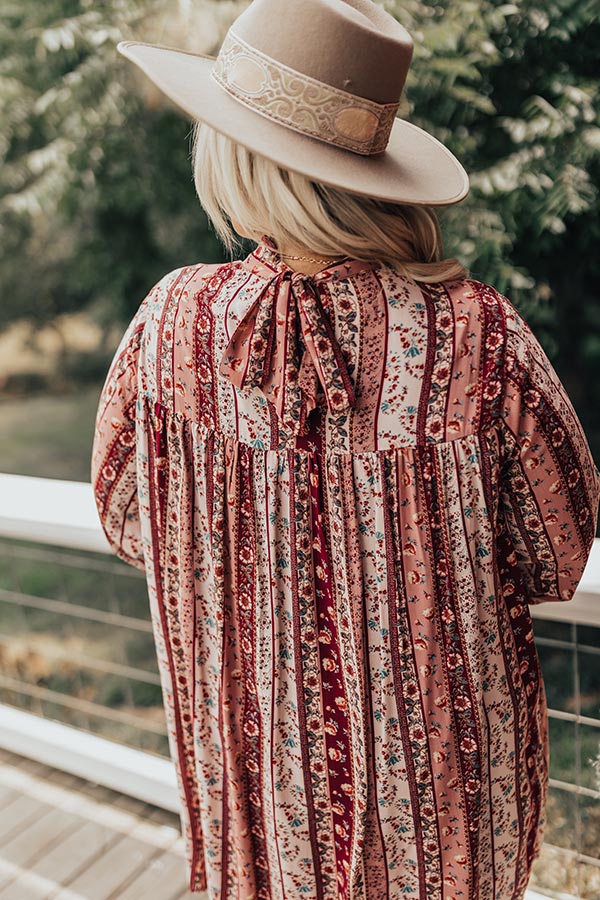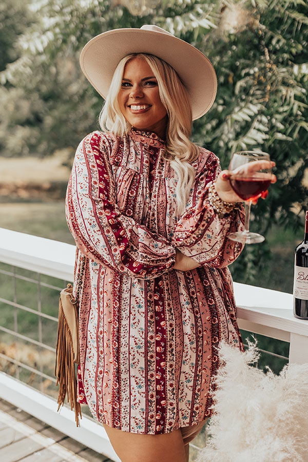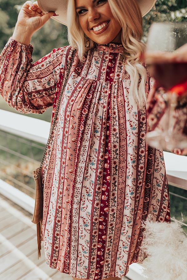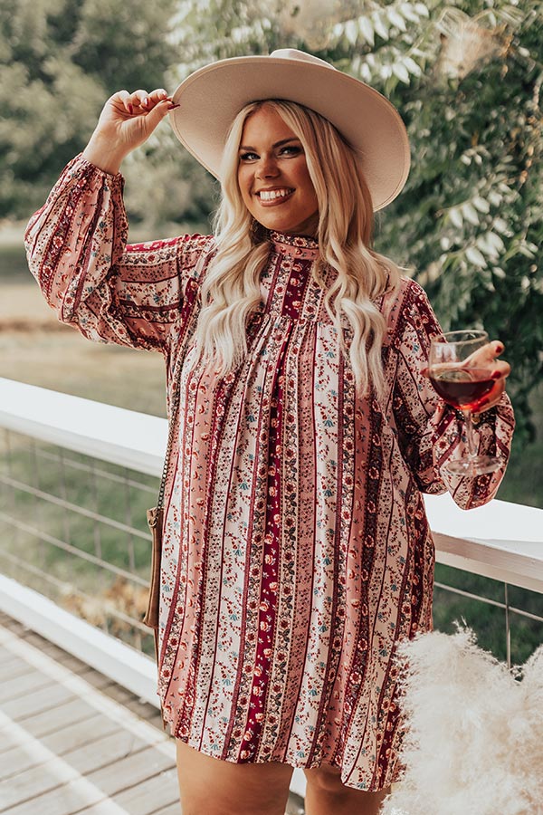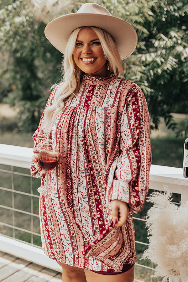 Plus Size - We have no doubt you will want to wear our stylish plus size 'With Me Forever Shift Dress' on repeat with its lightweight material, unique blush hued floral print vertical stripes, a high neckline, long bubble sleeves, a keyhole accented upper back with a tie closure, and a relaxed silhouette that falls into a straight mid-thigh length hemline!