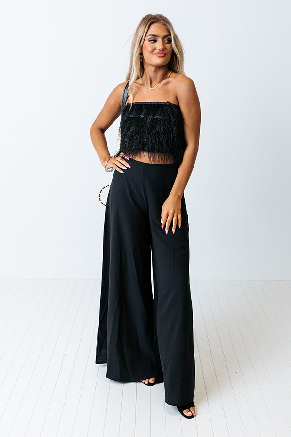Arrive in style in our chic black 'Witty Remark' flare featuring lightweight material, a high waistline, and an ultra relaxed but sophisticated silhouette that falls into straight ankle-length hemlines!