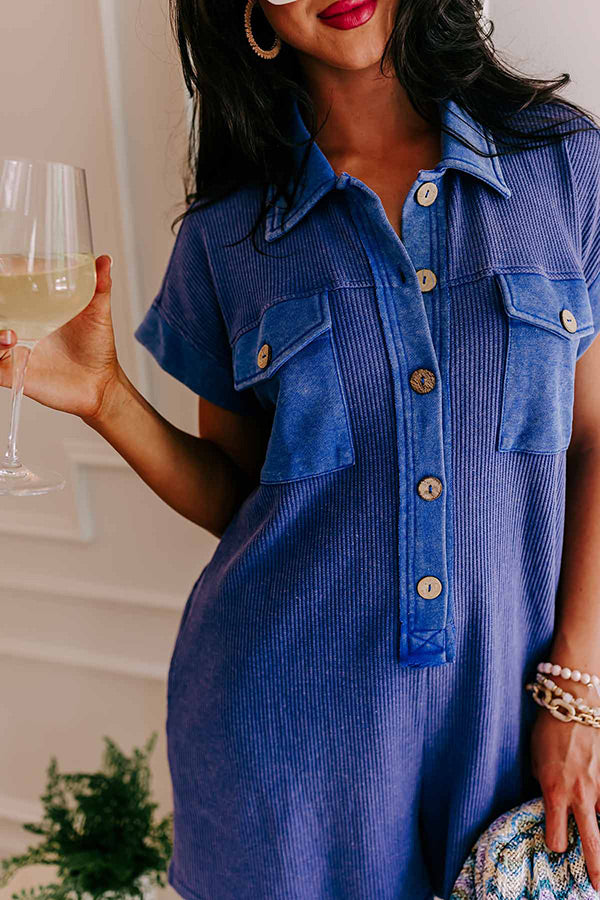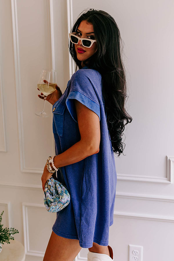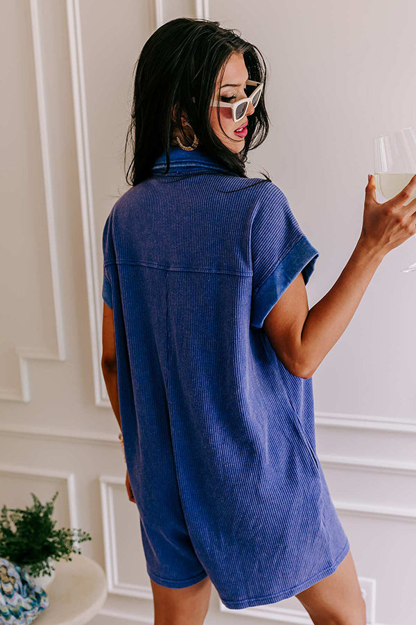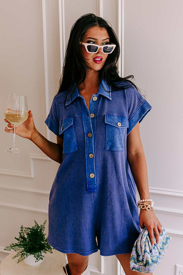 Wonderful Weekend Waffle Knit Romper in Royal Blue