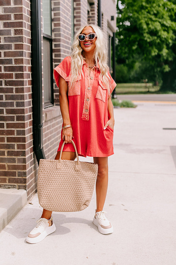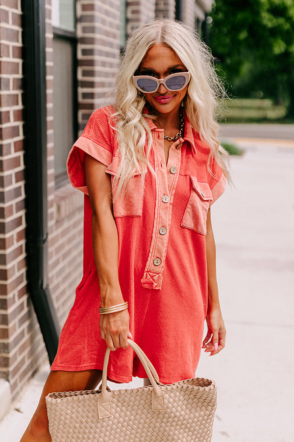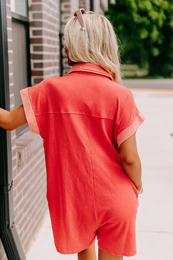 Wonderful Weekend Waffle Knit Romper in Tangerine