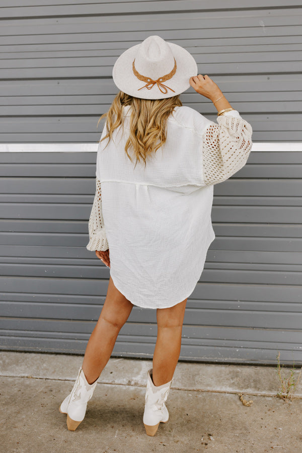 - A relaxed silhouette that ends in a rounded high-low hemline