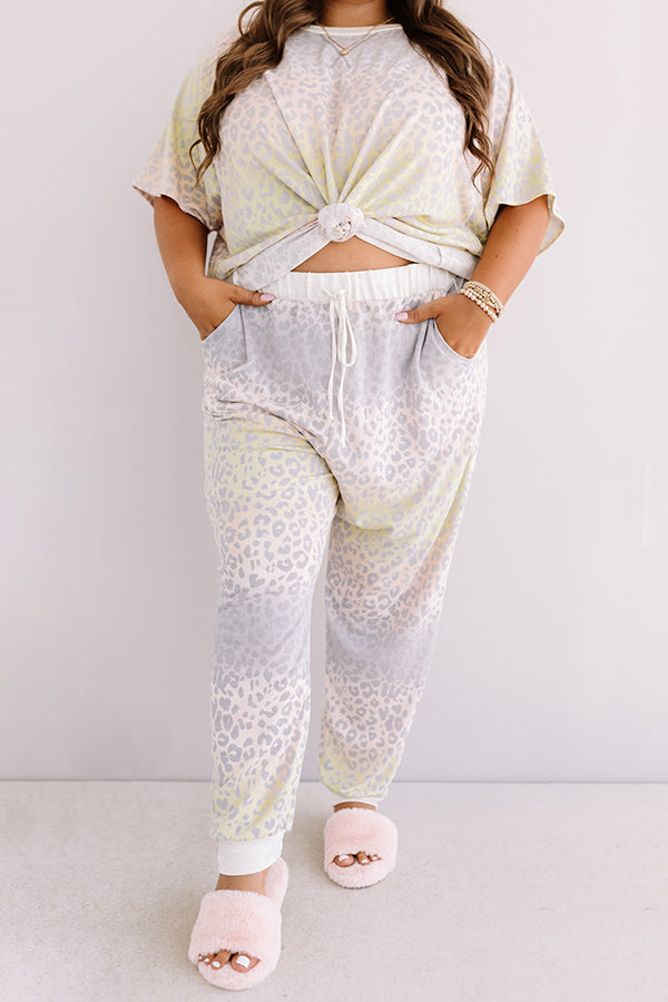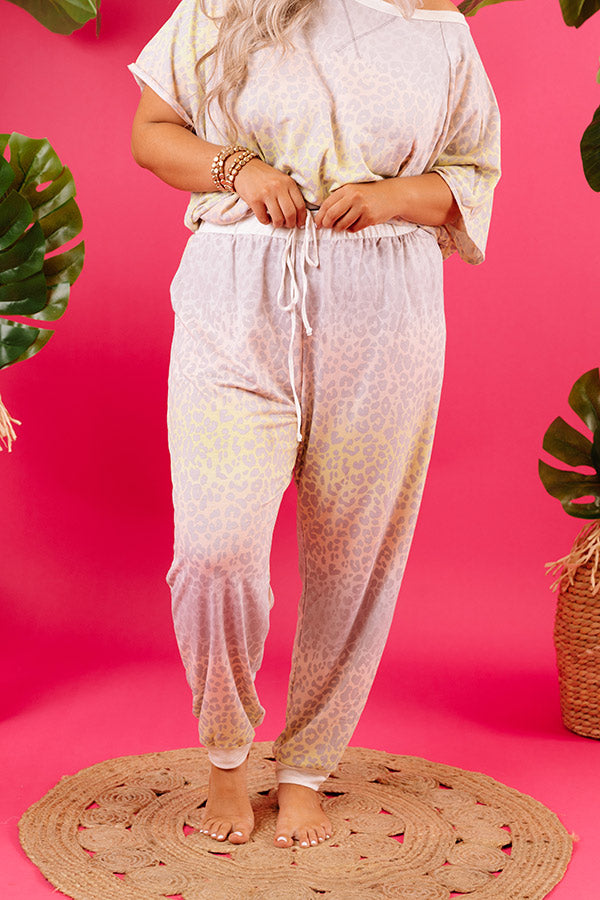 Plus Size - Work from home in comfort and style with these adorable joggers featuring soft lightweight material patterned with a subtle ombre leopard print, an elastic waistline with a tie belt, accent side pockets, and a relaxed pants silhouette that falls into fitted ankle-length hemlines!