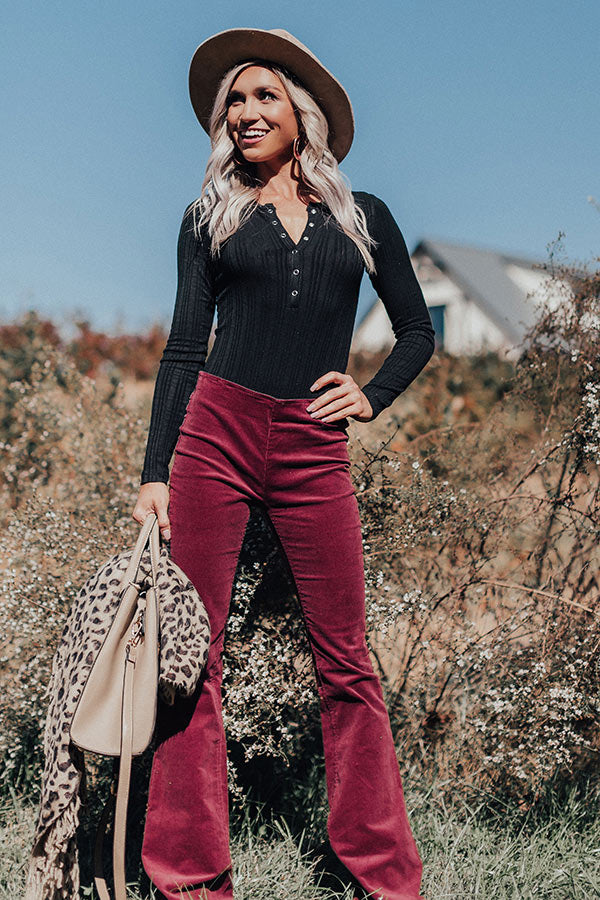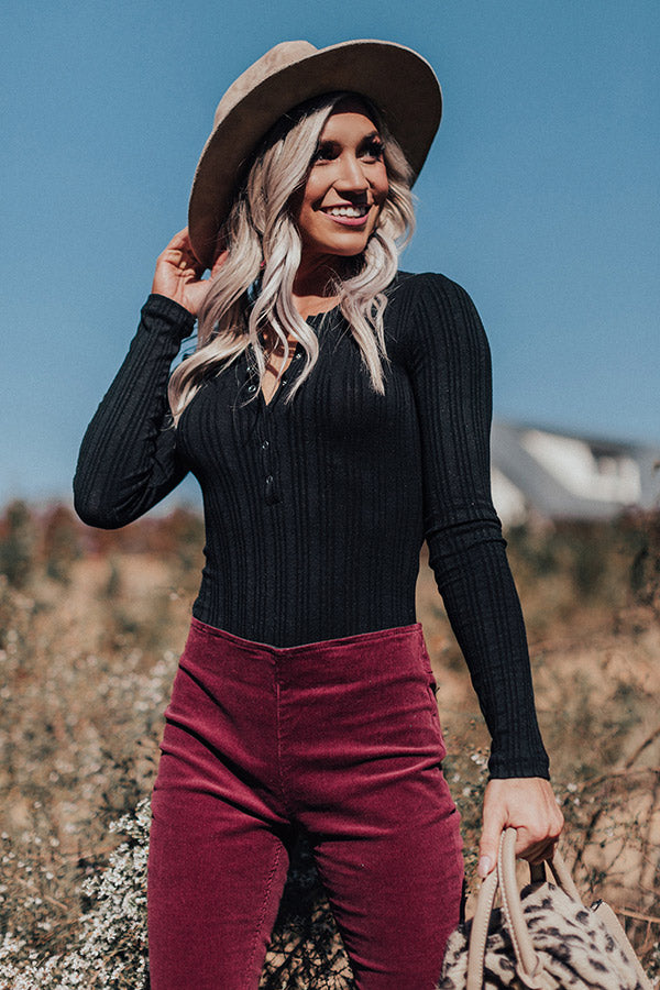 There is no better piece to layer up for the fall with than our black "world renowned" bodysuit featuring stretchy lightweight material with ribbed texturing, a button up bodice with a high rounded neckline, long fitted sleeves, a silhouette that hugs you in all the right places, and a cheeky fit with a two snap button closure! You can style this piece under any type of bottoms and wear any type of outerwear with it for a variety of looks that will carry you from season to season! Measurements