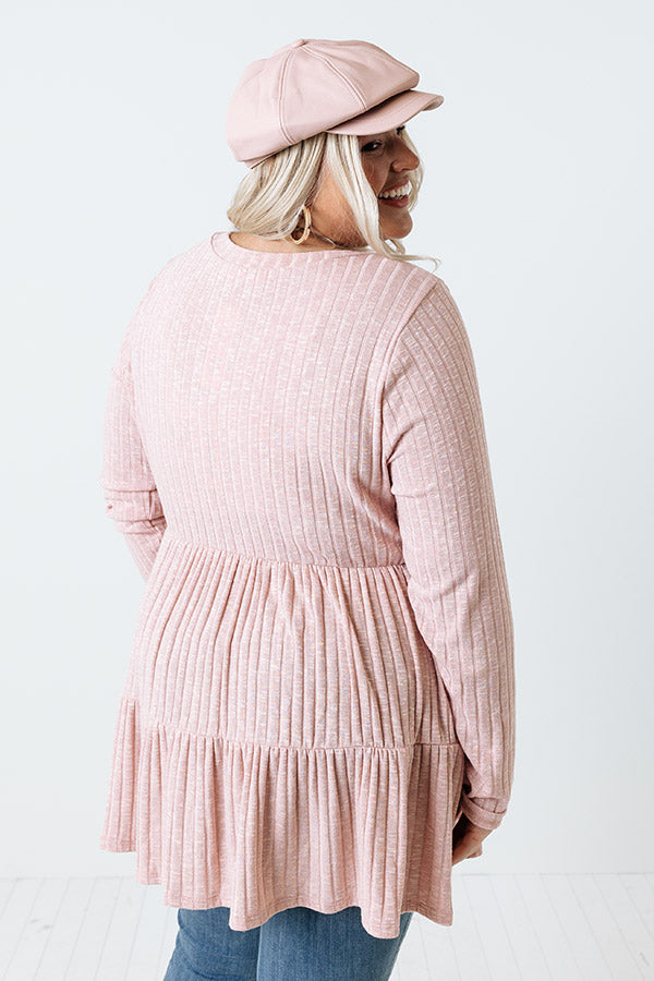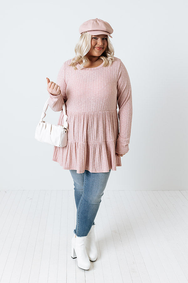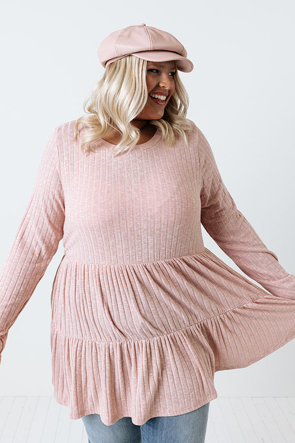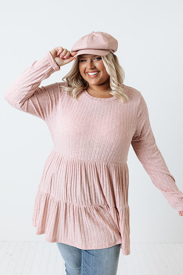 Look stylish year round in our darling pink plus size 'Worth The Wait Shift Top' featuring soft lightweight flowy material with wide vertical ribbed texturing, a high rounded neckline, long loose sleeves, and a relaxed tiered silhouette that falls into an uneven tunic-length hemline!