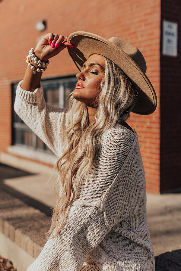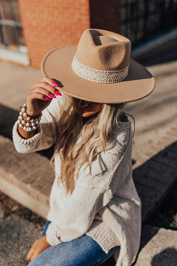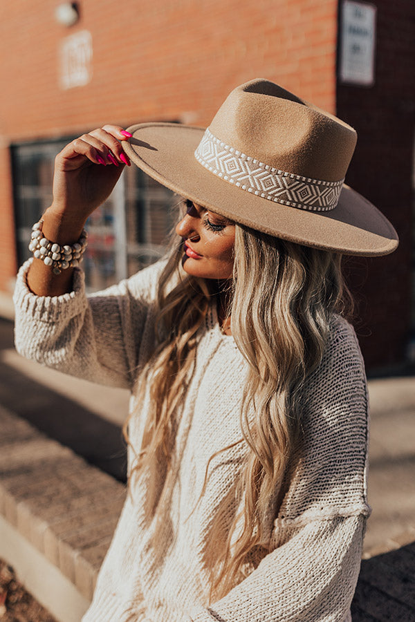 Add a beautiful finish to any look with our pretty iced latte colored 'Wrapped In Smiles' fedora featuring lightweight felt material, a 4-inch brim, and a pretty embroidered accent band!