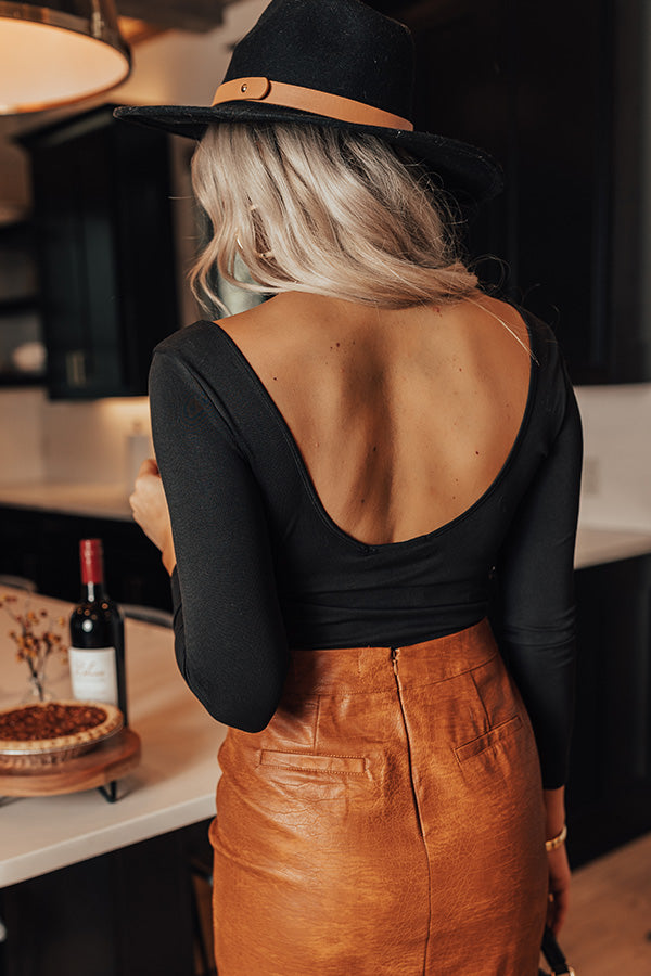 Arrive in style with our chic black 'You Are Invited Bodysuit' featuring lightweight and stretchy material, a scooped neckline and upper back, long sleeves, and a flattering form fitting silhouette that ends in cheeky fit bottoms with a snap button closure! Measurements