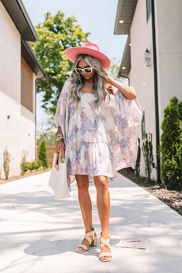 Compliments are sure to fly your way when you arrive in our charming 'Your Way With Words Dress' featuring lightweight flowy material patterned with a blue and pink floral patchwork prints, a square neckline with wide shoulder straps, a mid-cutout back with a tie closure, and a relaxed silhouette that falls into an uneven mid-thigh length hemline!