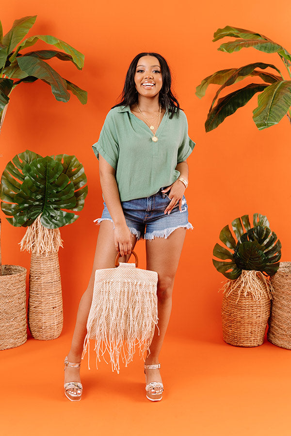 Stay simple but sophisticated in our casual pear colored 'You've Got The Beat Shift Top' featuring ultra lightweight breezy material with subtle texturing, a collared v-cut neckline, short loose sleeves, and a relaxed silhouette that falls into a rounded hemline! Measurements